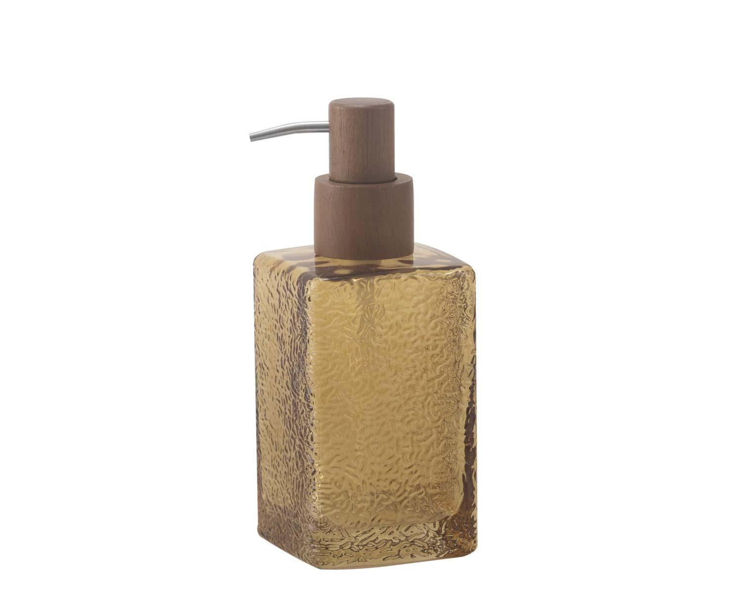 Dispenser μπάνιου από γυαλί και λεπτομέρεια και αντλία από ξύλο ακακίας. ΄Ένα κομψό κομμάτι σε ρουστίκ στυλ που μπορεί να συνδυαστεί με υπόλοιπα αξεσουάρ της συλλογής.