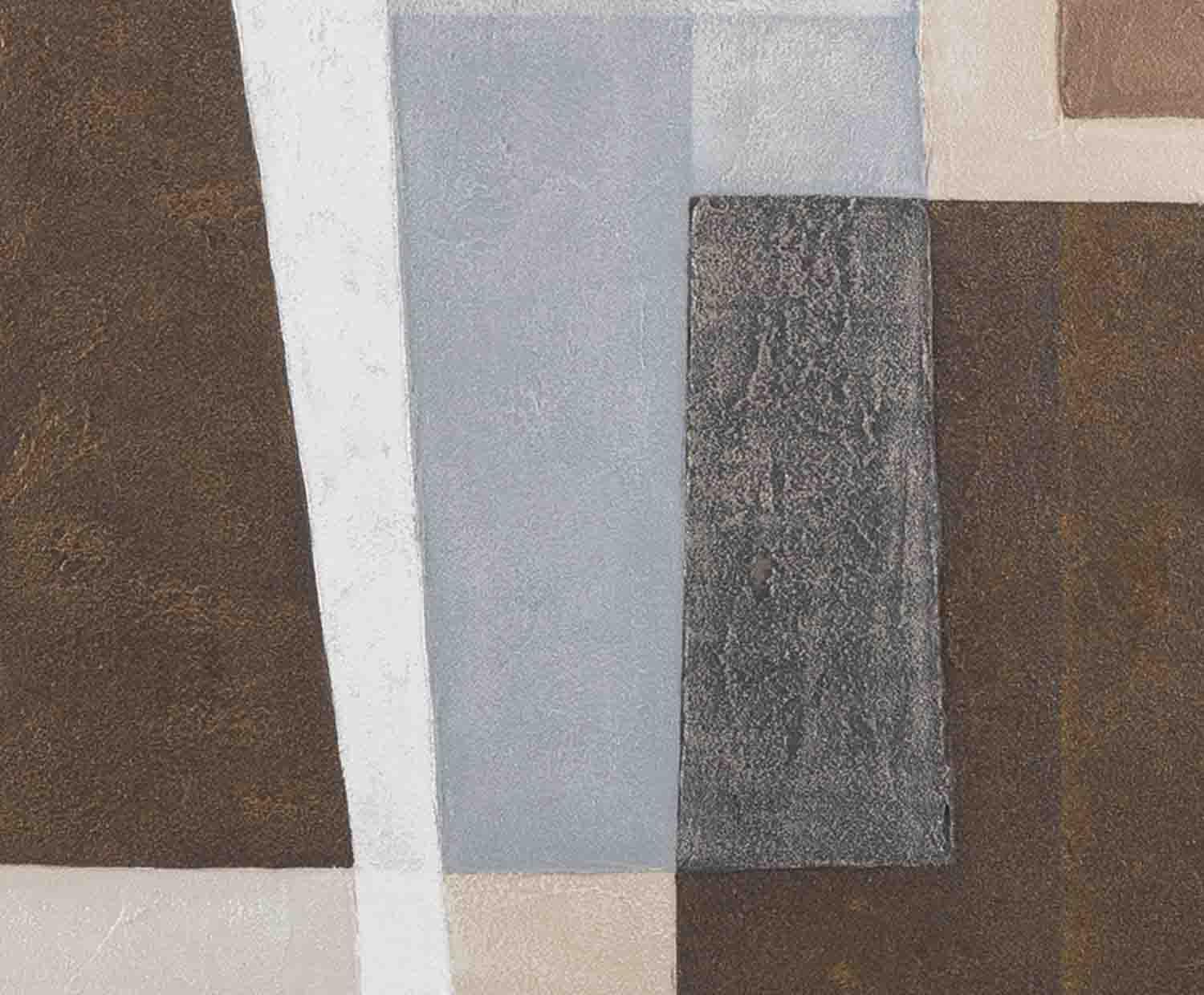 Αφηρημένος χειροποίητος πίνακας σε καμβά που συνδυάζει γεωμετρικά σχήματα σε καφέ, μπεζ και γκρι τόνους σε έναν οπτικό χορό. Οι φιγούρες μπλέκονται αρμονικά, δημιουργώντας μια μοναδική και ελκυστική οπτική αφήγηση.