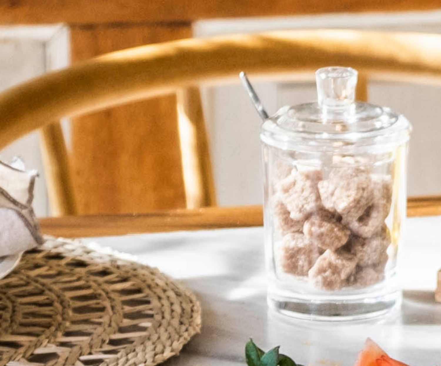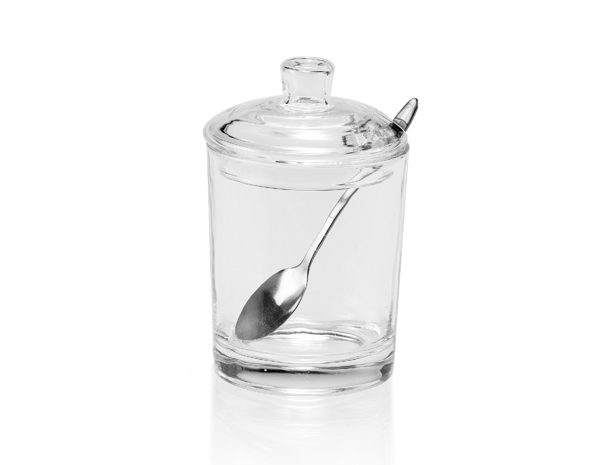 Διάφανο επιτραπέζιο μπολ ζάχαρης από γυαλί με καπάκι για να προστατεύει τη ζάχαρη και ένα μεταλλικό κουτάλι για άνετο σερβίρισμα. Είναι ιδανικό αξεσουάρ για κάθε κουζίνα, χάρη στον ουδέτερο και λειτουργικό σχεδιασμό του.