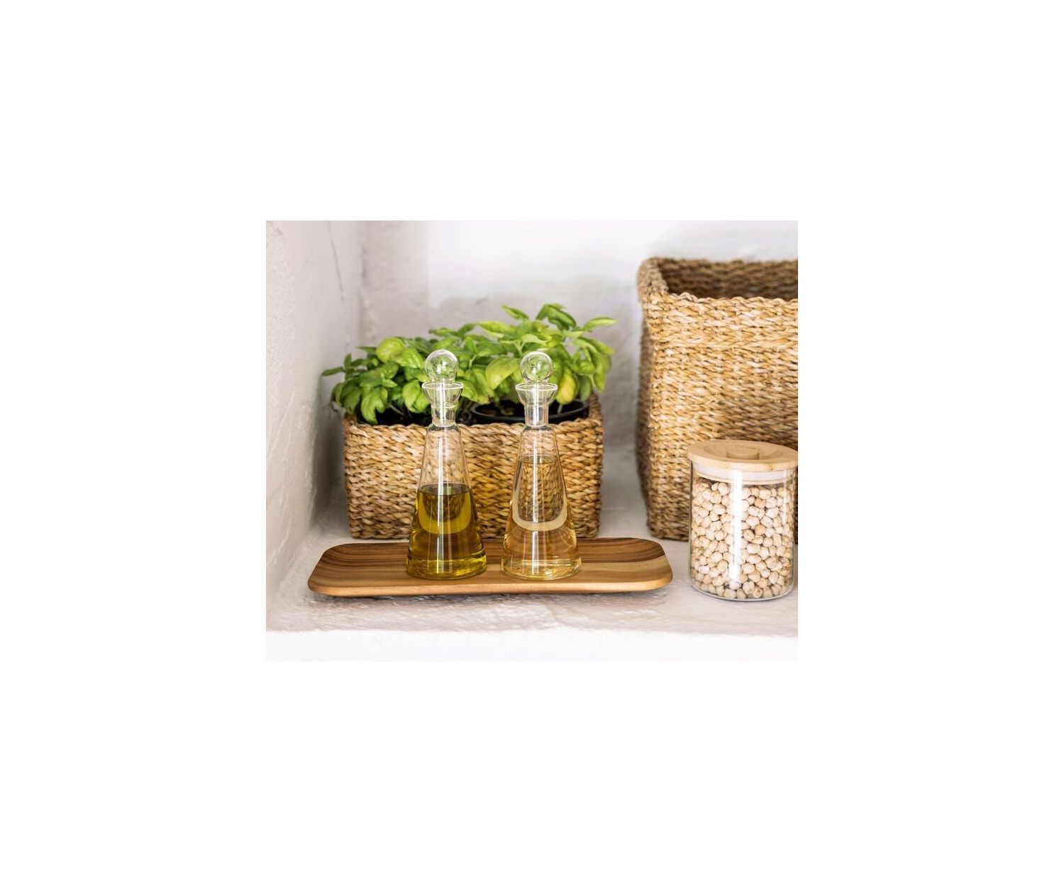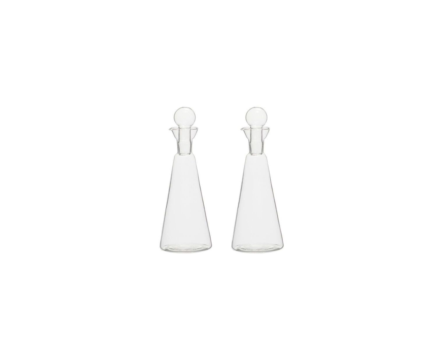 Αυτό το σετ λαδιού και ξιδιού είναι κατασκευασμένο από γυαλί και διαθέτει γυάλινο πώμα σε σχήμα μπάλας.