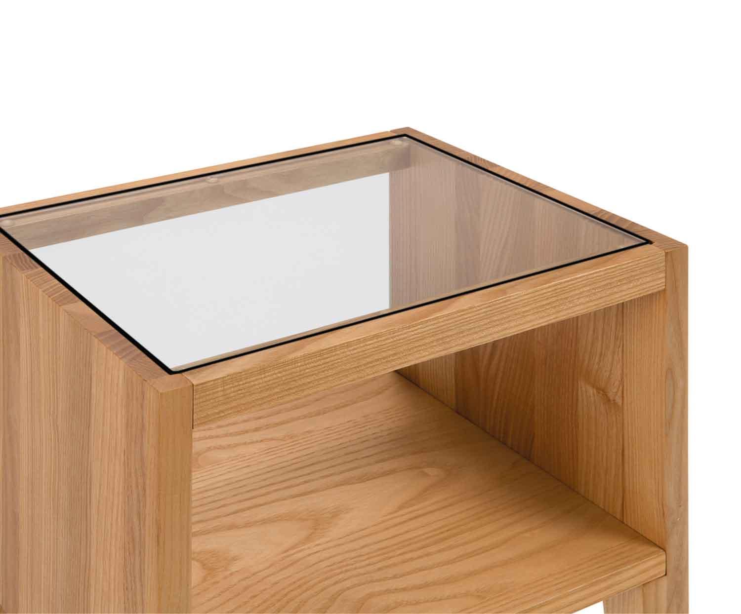 Κομοδίνο που μπορεί να χρησιμοποιηθεί και σαν βοηθητικό τραπέζι. Έχει τετράγωνο σχήμα, και διαθέτει ράφι ανοιχτό στην μπροστινή και πίσω πλευρά για την αποθήκευση βιβλίων ή αντικειμένων που θέλετε να έχετε εύκολη πρόσβαση.