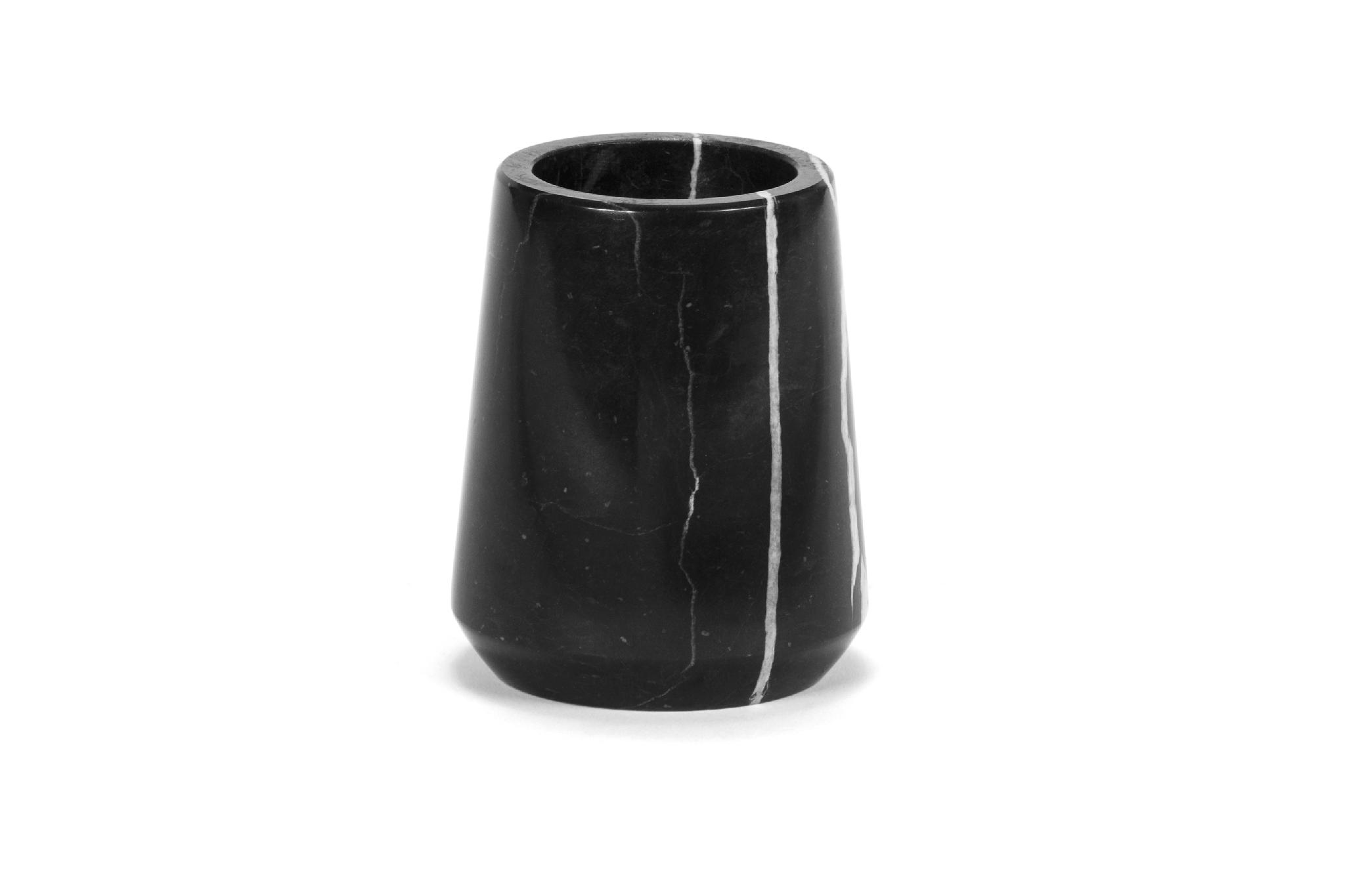 Αυτή η θήκη για οδοντόβουρτσες είναι κατασκευασμένη από μασίφ μαύρο μάρμαρο και είναι ένα κομψό αξεσουάρ για το μπάνιο σε ουδέτερο στυλ.