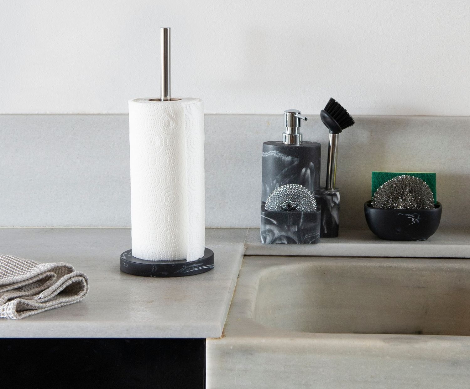 Βάση για το χαρτί κουζίνας με εφέ μαύρου μάρμαρου, μια καλή επιλογή για να έχετε το ρολό χαρτί κουζίνας στο τραπέζι ή τον πάγκο σας.