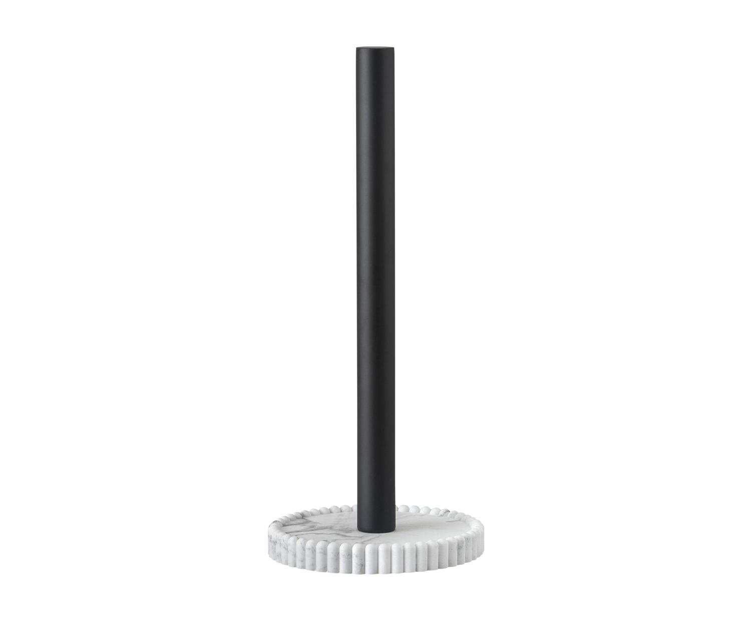 Βάση για χαρτί κουζίνας με κυκλική βάση από πολυρητίνη με εφέ μαρμάρου και ανάγλυφες κάθετες ρίγες. Χάρη στο υλικό της, μπορούμε να απολαύσουμε τη λεπτή και όμορφη αισθητική του μαρμάρινου εφέ, σε ένα ελαφρύ και ανθεκτικό αντικείμενο, ένα πρακτικό και διακοσμητικό κομμάτι που θα συνδυαστεί με κάθε στυλ κουζίνας.