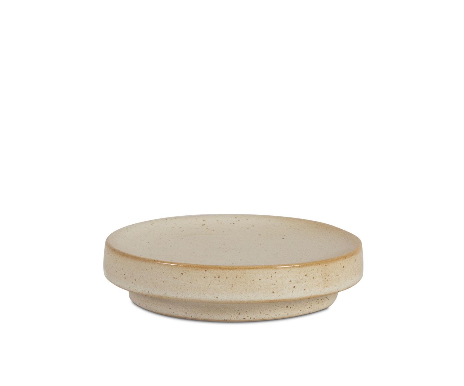 Βάση για σαπούνι σε μπεζ απόχρωση και ρουστίκ στυλ, αποτελεί μέρος ενός σετ που περιλαμβάνει ποτηράκι για οδοντόβουρτσες, αντλία για σαπούνι και πιγκάλ τουαλέτας.