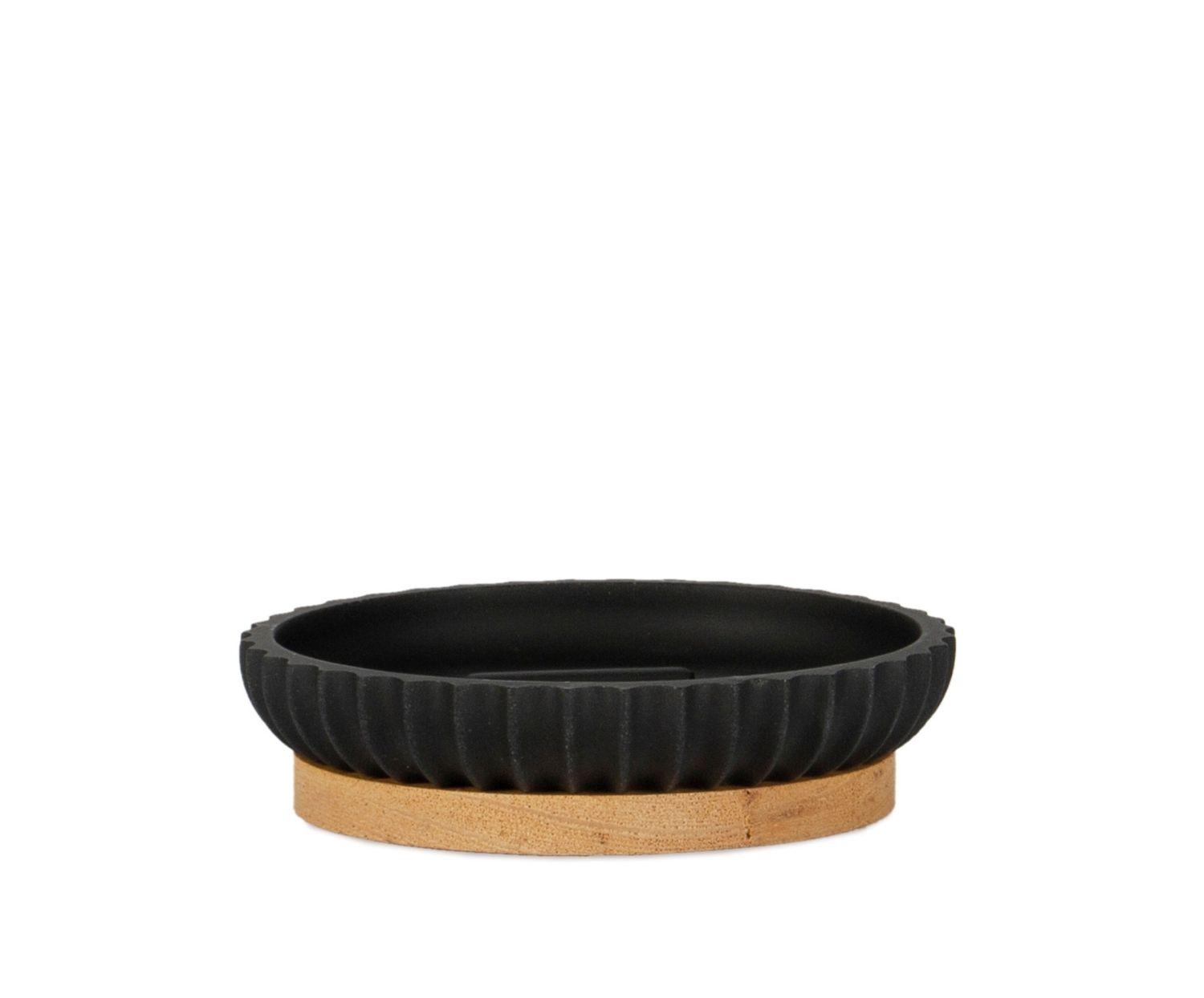 Σετ μπάνιου σε μαύρο χρώμα, συνδυασμένο με φυσικό ξύλο ακακίας.