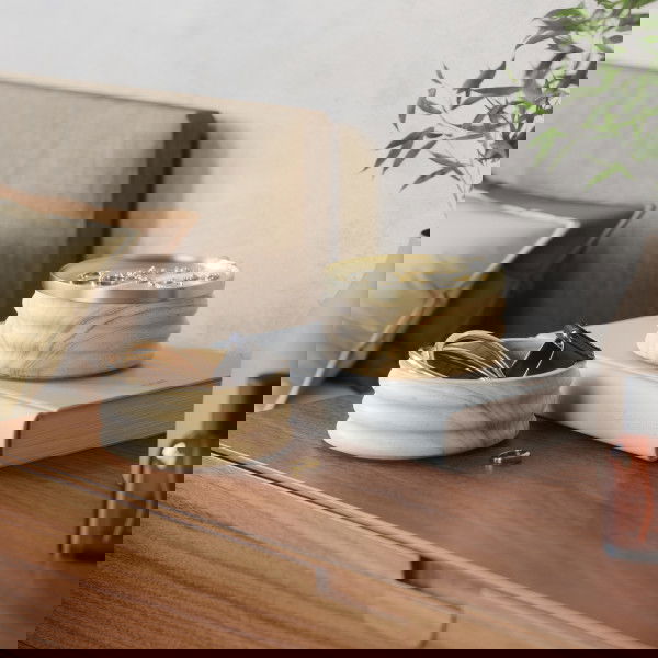 Αυτή η κοσμηματοθήκη είναι η τέλεια προσθήκη για να σας βοηθήσει να αποθηκεύσετε και να οργανώσετε τη συλλογή αξεσουάρ σας. Το επιμεταλλωμένο μεταλλικό καπάκι του Tesora λειτουργεί ως δίσκος για αποθήκευση και εμφάνιση εύκολα προσβάσιμων αξεσουάρ. Ο σχεδιασμός των δύο επιπέδων του το καθιστά μια ευέλικτη λύση αποθήκευσης που μπορεί να στοιβάζεται το ένα πάνω στο άλλο για εξοικονόμηση χώρου ή να διατηρείται χωριστά. Το τέλειο μέγεθός του το καθιστά εύκολο να το τοποθετήσετε δίπλα στο κομοδίνο σας για εύκολη χρήση.