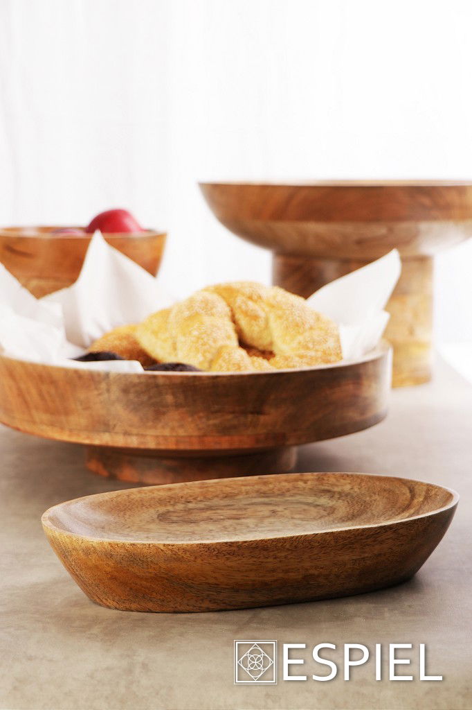 Η συλλογή από ιδιαίτερα μπωλ και δίσκους σερβιρίσματος της Espiel από μασίφ ξύλο μάνγκο θα δημιουργήσει το πιο εντυπωσιακό αποτέλεσμα παρουσίασης στο μπουφέ ή στο τραπέζι σας. Το ξύλο μάνγκο είναι κατάλληλο για επαφή με τρόφιμα και χαρακτηρίζεται από την στιβαρότητα και την αντοχή του, που το καθιστά κατάλληλο για επαγγελματική χρήση ! – Espiel collection of bowls and trays of impressive and bold dimensions, made of solid mango wood, will create the most impressive natural effect for your buffet and table presentation. Mango wood is foodsafe and endures all day proffessional use !