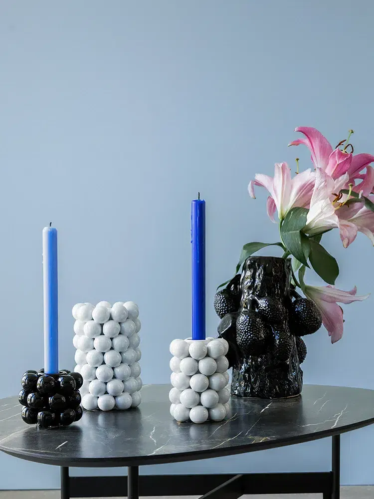 Άφθονες κεραμικές χάντρες ενωμένες μεταξύ τους δημιουργούν αυτό το παιχνιδιάρικο κηροπήγιο που ταιριάζει σε όλους τους χώρους του σπιτιού!