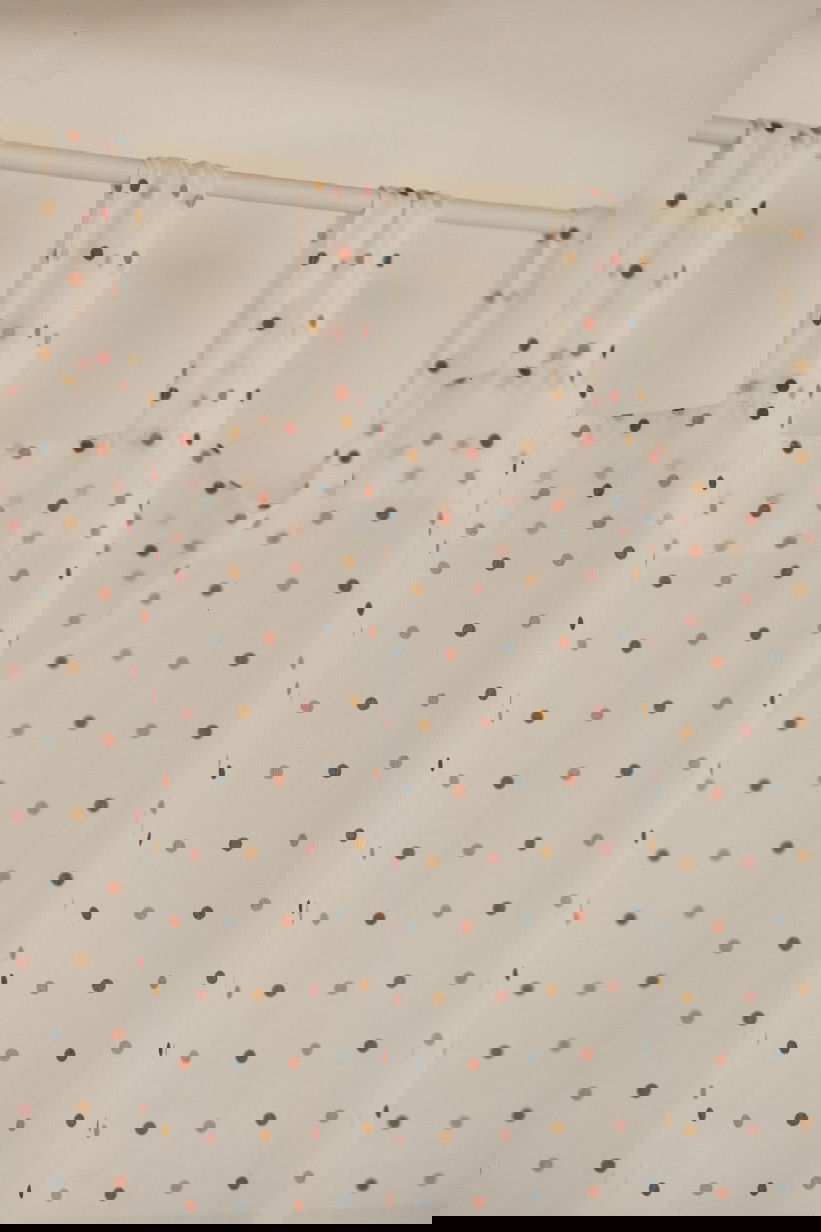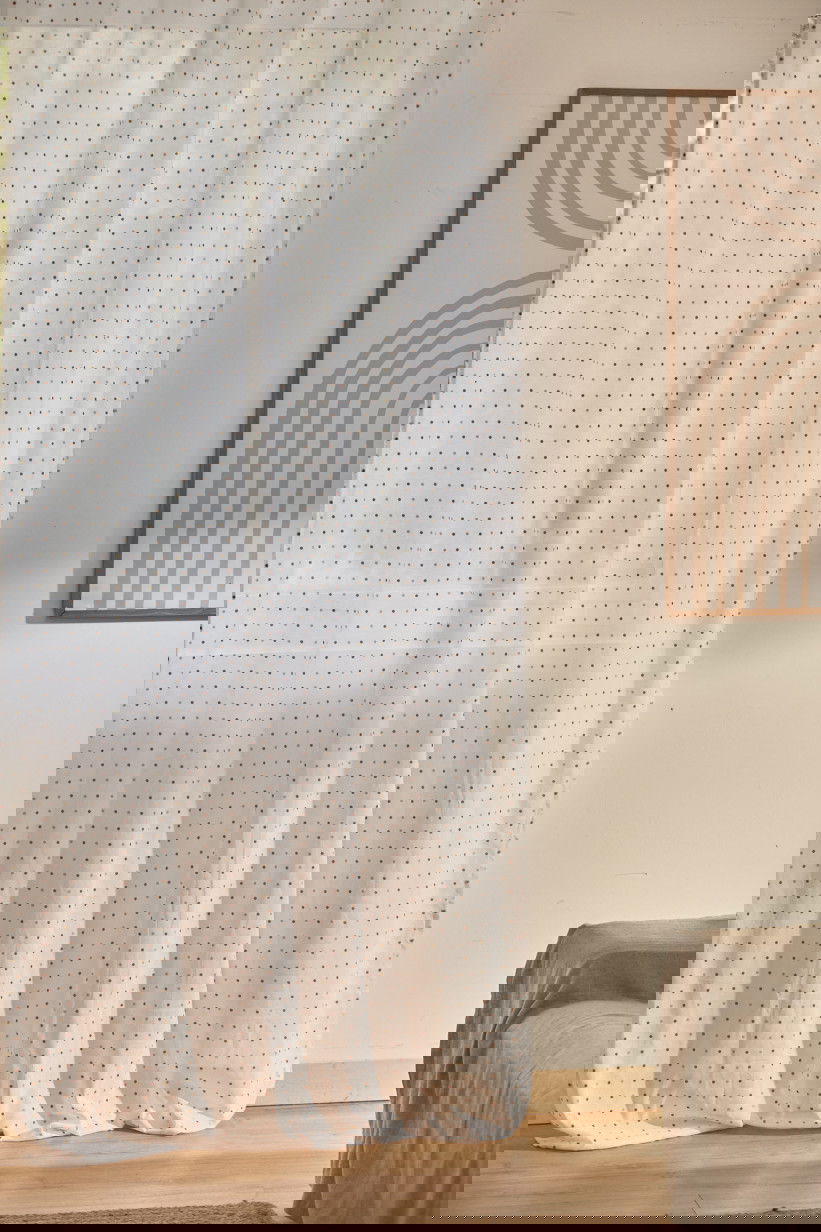 Έτοιμη βαμβακερή κουρτίνα με κομψά πουά σε λευκό χρώμα.