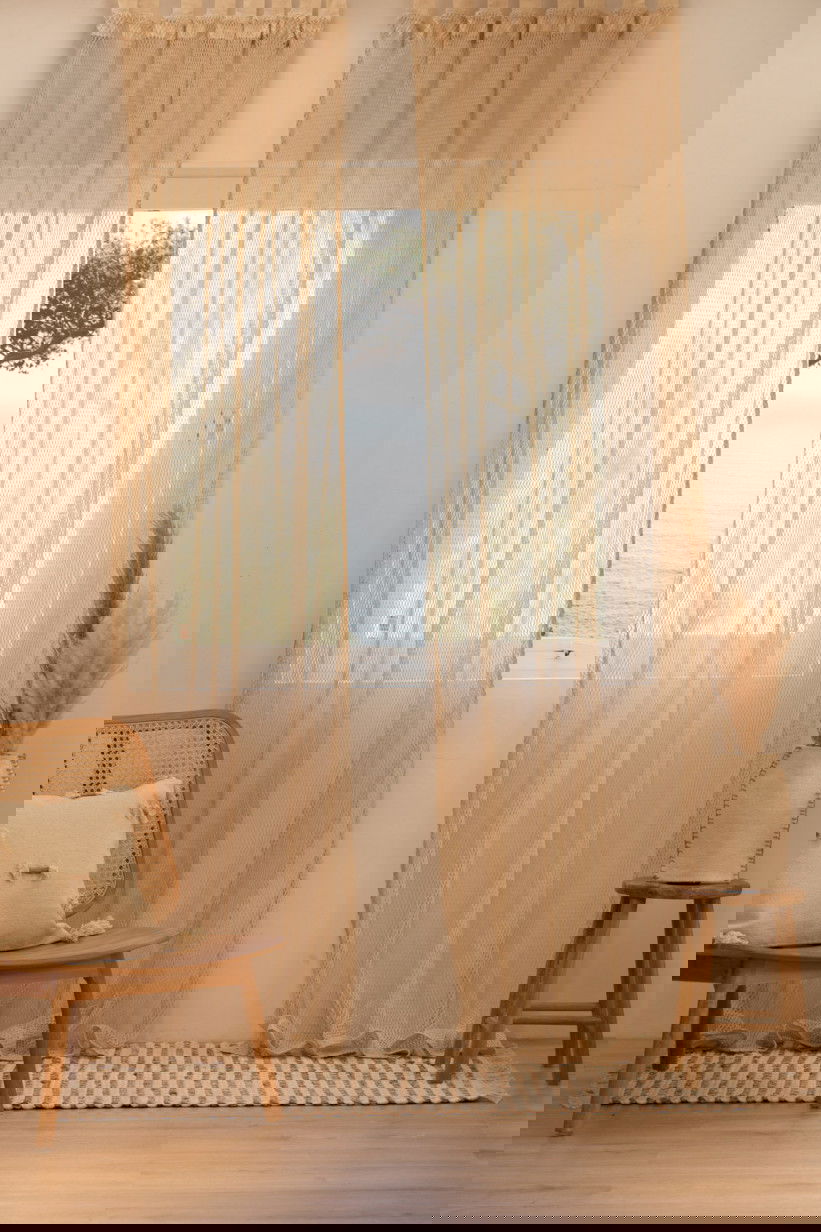 Έτοιμη βαμβακερή κουρτίνα δίχτυ, μία ιδιαίτερη πρόταση για το σαλόνι ή το υπνοδωμάτιο, που μπορεί να συνδυαστεί με μία ακόμα βαμβακερή κουρτίνα Calma House.