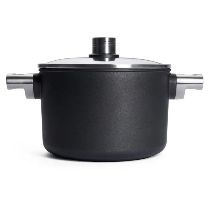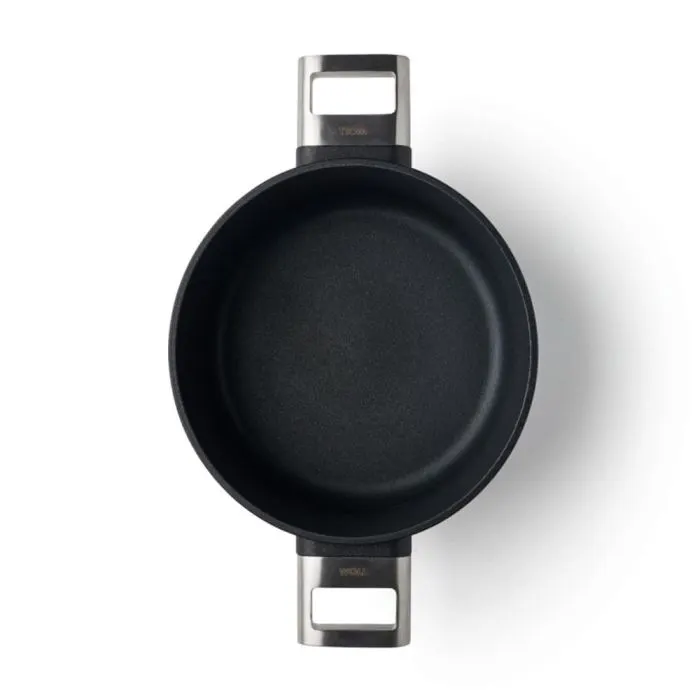 Εξαιρετικά στιβαρή κατασκευή με κορυφαίες θερμικές ιδιότητες, αντικολλητική επιφάνεια τελευταίας τεχνολογίας με εντυπωσιακές επιδόσεις και αποσπώμενη ανοξείδωτη λαβή για καθημερινή πρακτικότητα.