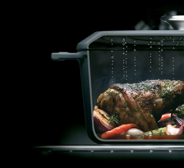 Το εσωτερικό των σκευών είναι σχεδιασμένο να έχει τραχιά επιφάνεια όπου στα μικρά κενά που δημιουργούνται συγκεντρώνονται οι χυμοί από το μαγείρεμα και πέρα από τις αντικολλητικές ιδιότητες που δίνουν, ενισχύουν επιπλέον τη γεύση! Ο καινοτόμος σχεδιασμός στo εσωτερικό από τα καπάκια των σκευών με ειδικές προεξοχές ενεργοποιούν έναν μοναδικό συνεχόμενο κύκλο υγρασίας κατά το μαγείρεμα.