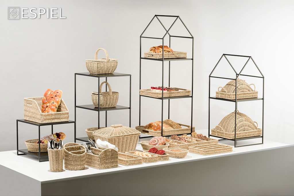 Ψάθινα καλάθια, ψωμιέρες και καλάθια σε διαστάσεις GN για γαστρονόμους, από την συλλογή της Espiel σε κλάσσικο μπεζ και μοντέρνο γκρι, για τον μπουφέ και όχι μόνο. Κατασκευασμένα από συνθετικό rattan, ανθεκτικά και κατάλληλα για επαγγελματική χρήση, θα σας εξυπηρετήσουν για να σερβίρετε κάθε πιθανή λιχουδιά ή για τα μαχαιροπήρουνα σας, παρουσιάζοντας τα με τον ποιο ευφάνταστο τρόπο αλλά και πρακτικότητα ! Espiel collection of bread baskets, GN baskets and more in classic beige and modern grey color for your buffet or dining table. Made of synthetic rattan, highly resistant and durable for professional use, they will present all kind of delicacies or even cutlery in the most creative yet practical way !