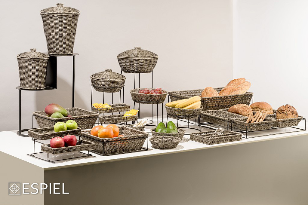 Ψάθινα καλάθια, ψωμιέρες και καλάθια σε διαστάσεις GN για γαστρονόμους, από την συλλογή της Espiel σε κλάσσικο μπεζ και μοντέρνο γκρι, για τον μπουφέ και όχι μόνο. Κατασκευασμένα από συνθετικό rattan, ανθεκτικά και κατάλληλα για επαγγελματική χρήση, θα σας εξυπηρετήσουν για να σερβίρετε κάθε πιθανή λιχουδιά ή για τα μαχαιροπήρουνα σας, παρουσιάζοντας τα με τον ποιο ευφάνταστο τρόπο αλλά και πρακτικότητα ! Espiel collection of bread baskets, GN baskets and more in classic beige and modern grey color for your buffet or dining table. Made of synthetic rattan, highly resistant and durable for professional use, they will present all kind of delicacies or even cutlery in the most creative yet practical way !