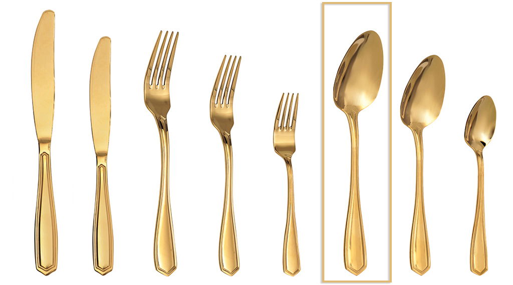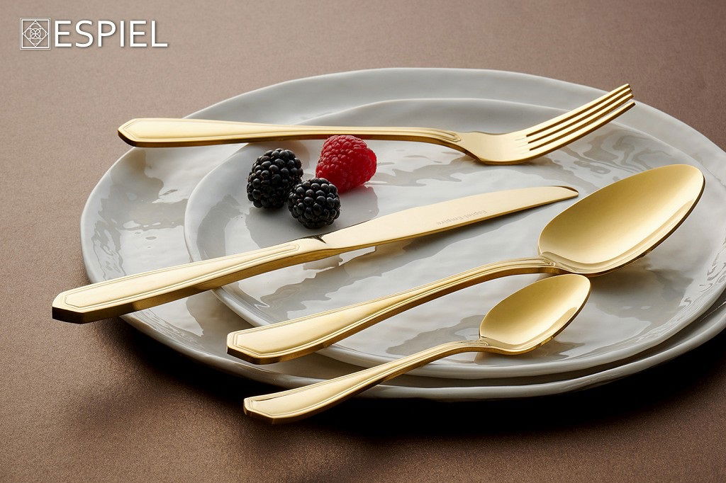Δώστε αέρα κλασσικής πολυτέλειας στο τραπέζι σας συνδυάζοντας τα αγαπημένα σας πιάτα με το σετ φαγητού ”EMPIRE” σε εντυπωσιακό χρυσό χρώμα και καταπλήξτε τους καλεσμένους σας ! – Surprise your guests with the cutlery set ”EMPIRE” in impressive golden colour and your dining table will be reflecting absolute classic luxury !