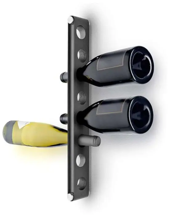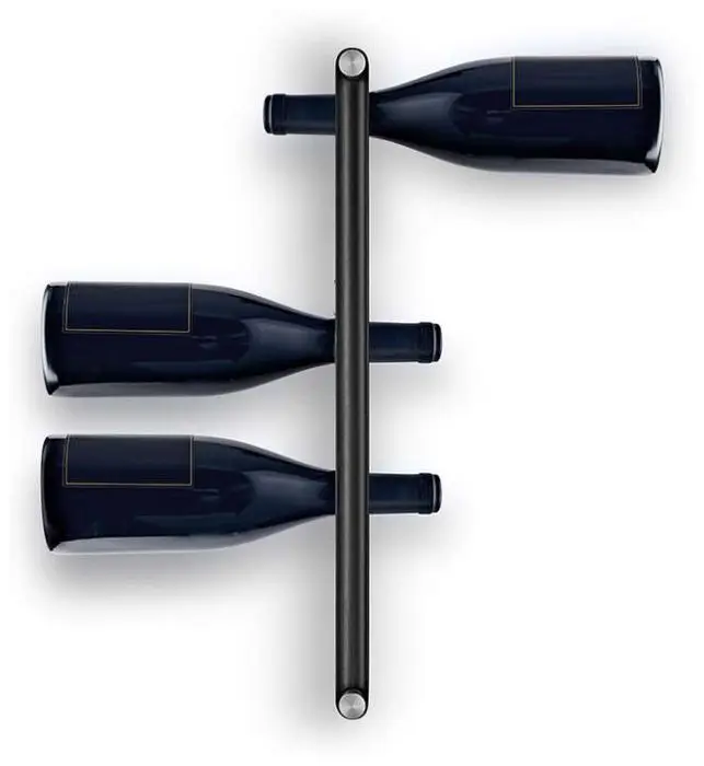 Στην κρεμαστή βάση κρασιού, τα μπουκάλια κρασιού παρουσιάζονται με διακοσμητικό και εντυπωσιακό τρόπο, με τα μπουκάλια να κάθονται με ασφάλεια σε μια μικρή γωνία από τον τοίχο, ώστε οι ετικέτες να είναι ευανάγνωστες.