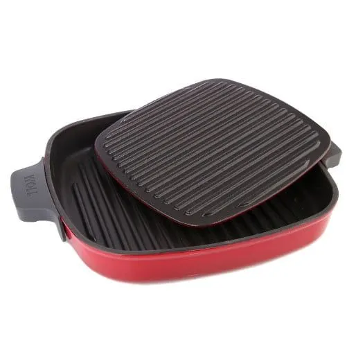 Η Woll συνοδεύει κάθε γκριλιέρα της σειράς Iron με μια μοναδική πρέσσα ψησίματος με ραβδώσεις, επίσης από μαντέμι, η οποία σας επιτρέπει να ψήνετε το κρέας ταυτόχρονα και από τις 2 πλευρές.Έτσι κερδίζετε χρόνο και ενέργεια. Το μόνο που έχετε να κάνετε είναι να ζεστάνετε την πρέσσα μαζί με την γκριλιέρα πριν το ψήσιμο.