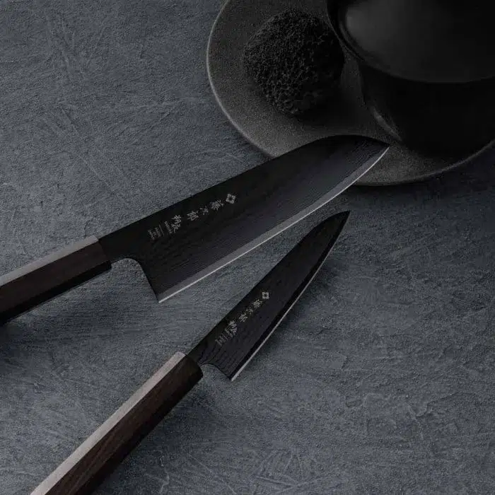 Χάρη στην καινοτόμα τεχνολογία ηλεκτρολυτικής βαφής, το φυσικό φιλμ του ανοξείδωτου ατσαλιού ενισχύεται, χαρίζοντας μια βαθιά, πολυτελή μαύρη απόχρωση. Η μαύρη λεπίδα θυμίζει το σκοτάδι της νύχτας χωρίς φεγγάρι, ενώ η λαμπερή της κόψη αντανακλά τη λάμψη του μισοφέγγαρου.