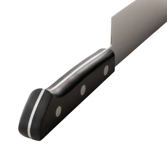 To μαχαίρι σεφ είναι το αγαπημένο μαχαίρι κάθε επαγγελματία αλλά και ερασιτέχνη μάγειρα, και όχι άδικα. Έχει ίσως τις περισσότερες χρήσεις από κάθε άλλο μαχαίρι της κουζίνας, αφού μπορείτε να το χρησιμοποιήσετε για να κόψετε μεγάλες μερίδες, να ψιλοκόψετε ή να τεμαχίσετε, από λαχανικά, φρούτα μέχρι κρέας και ψάρι. Η φαρδιά του λάμα και η κυρτή του λεπίδα το κάνουν ιδανικό για γρήγορο κόψιμο ψιλών κομματιών. Το πάχος της λάμας στη ράχη είναι αρκετό για να σας δώσει το βάρος και τη δύναμη που χρειάζεστε, ενώ το μήκος της καλύπτει ένα μεγάλο εύρος καθημερινών εργασιών.