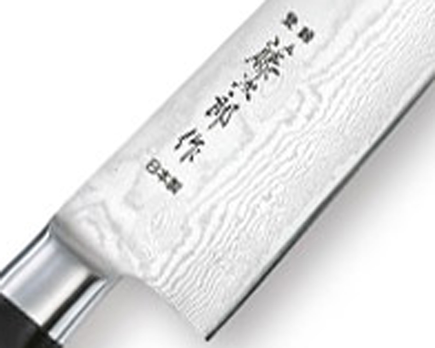Η λάμα του Tojiro-Pro DP Damascus Steel είναι κατασκευασμένη από δαμασκηνό ανοξείδωτο ατσάλι, φημισμένο στους αιώνες για την αιχμηρότητα και ανθεκτικότητά του, αλλά και για την εντυπωσιακή όψη που δημιουργούν τα χαρακτηριστικά “νερά” του και κάνουν κάθε μαχαίρι κυριολεκτικά μοναδικό. Πιο συγκεκριμένα, ο πυρήνας της λάμας αποτελείται από το καινοτόμο γιαπωνέζικο κράμμα ανοξείδωτου ατσαλιού VG10, χαρακτηριστικό για τη σκληρότητά του χάρη στο κοβάλτιο που περιέχει, το οποίο περικλείεται από ξεχωριστά στρώμματα δαμασκηνού ατσαλιού, ενισχύοντας έτσι τη σκληρότητα και την ανθεκτικότητα του μαχαιριού. Κάθε μαχαίρι της σειράς ακονίζεται στο χέρι από έμπειρους Γιαπωνέζους τεχνίτες και στις δύο πλευρές του στις 15°, προκειμένου να παραλάβετε ένα απόλυτα αιχμηρό μαχαίρι.