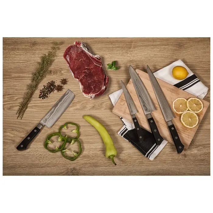 Ένα μαχαίρι που θα αγαπήσετε λόγω της γνωστής ιαπωνικής αιχμηρότητας και της κατασκευής απο δαμασκηνό ατσάλι, αλλά και λόγω της καινοτομίας όσον αφορά τον σχεδιασμό του αφού είναι μονοκόματο, με λαβή δυτικού τύπου.