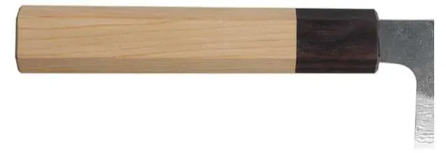 Το πρώτο μερος του μαχαιριού με το οποίο έρχεστε σε επαφή είναι η λαβή του. Το Yanagi Sashimi Hammered προσφέρει άνετο και ζεστό κράτημα που χαρίζει η ξύλινη λαβή. Είναι κατασκευασμένη από ξύλο μανόλιας, ένα ξύλο ανθεκτικό τόσο στη συνεχή και σκληρή χρήση, όσο και στις επαφές του με τα τρόφιμα και τα υλικά της κουζίνας. Το στρογγυλό σχήμα της λαβής κάνει τη χρήση του μαχαιριού άνετη και πρακτική από κάθε γωνία, δίνοντάς σας τη δυνατότητα να χρησιμοποιήσετε την κοφτερή του λεπίδα σε όποια ακριβώς κατεύθυνση θέλετε. Η ξύλινη λαβή ταιριάζει αρμονικά με το μέταλλο της λάμας και δένει σφικτά μαζί της μέσα στο κολάρο με ρητίνη.