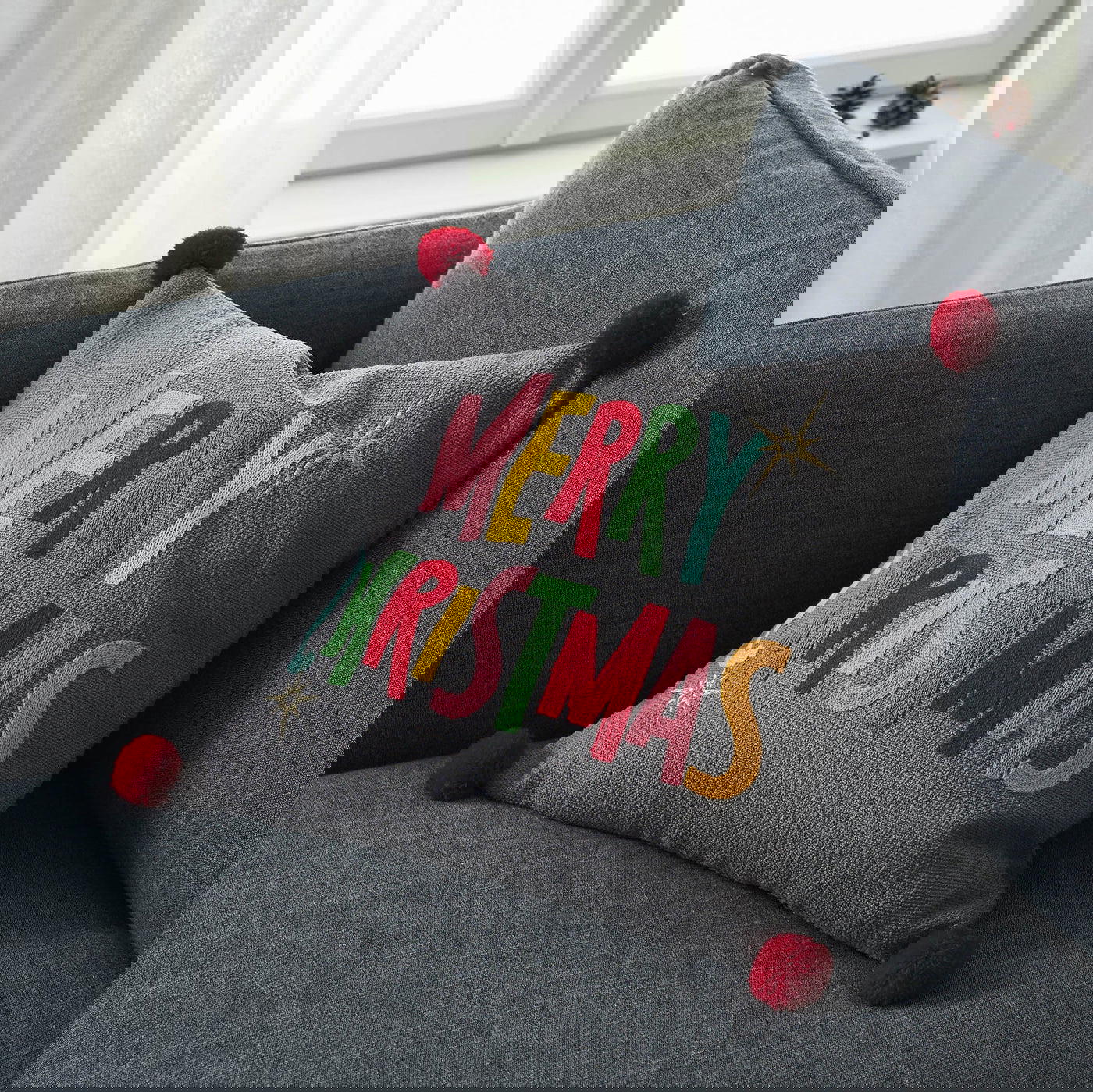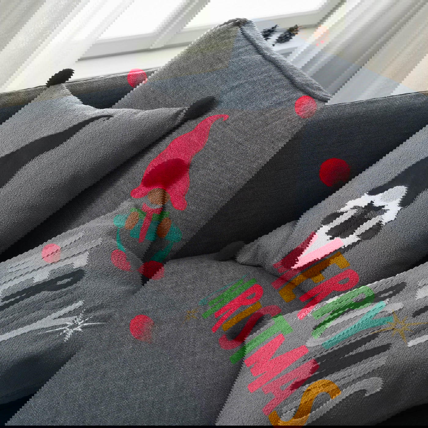 Μαξιλαροθήκη με κεντημένο εορταστικό σχέδιο και pom pon περιμετρικά.