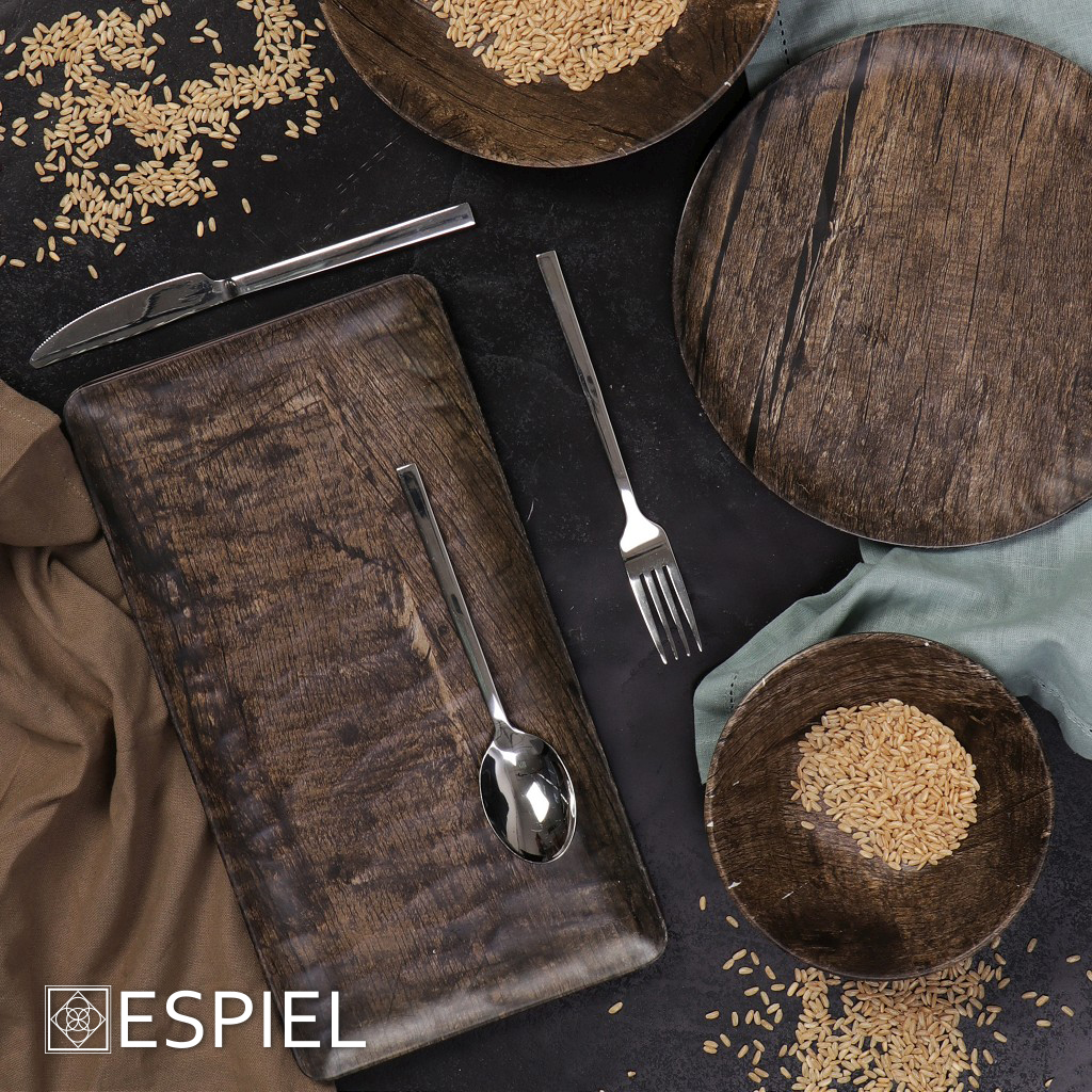 Είδη σερβιρίσματος από μελαμίνη με ιδιαίτερη επιφάνεια σε εφέ ξύλου, προσφέρουν λειτουργικότητα στο σερβίρισμα με την αντοχή τους στην καταπόνηση. Είναι απολύτως ασφαλή στην επαφή με τρόφιμα και κατάλληλα για πλυντήριο πιάτων σε προγράμματα έως 100°C! Κατάλληλο για θερμοκρασίες από -20°C έως +100°C. Να μην έρχεται σε επαφή με υγρά υψηλής οξύτητας. Ακατάλληλο για φούρνο μικροκυμμάτων και για επαφή με φωτιά. – Melamine tableware with wood effect surface, offer functionality at your serving needs with their durability at daily hard use. They are totally safe for contact with food and can be washed in dishwasher machine! Commercial dishwasher safe up to 100°C. Cannot be kept in high acid percentage liquid. Product has to be used between -20°C and 100°C temperatures. Not microwave safe. Cannot be contacted with fire!