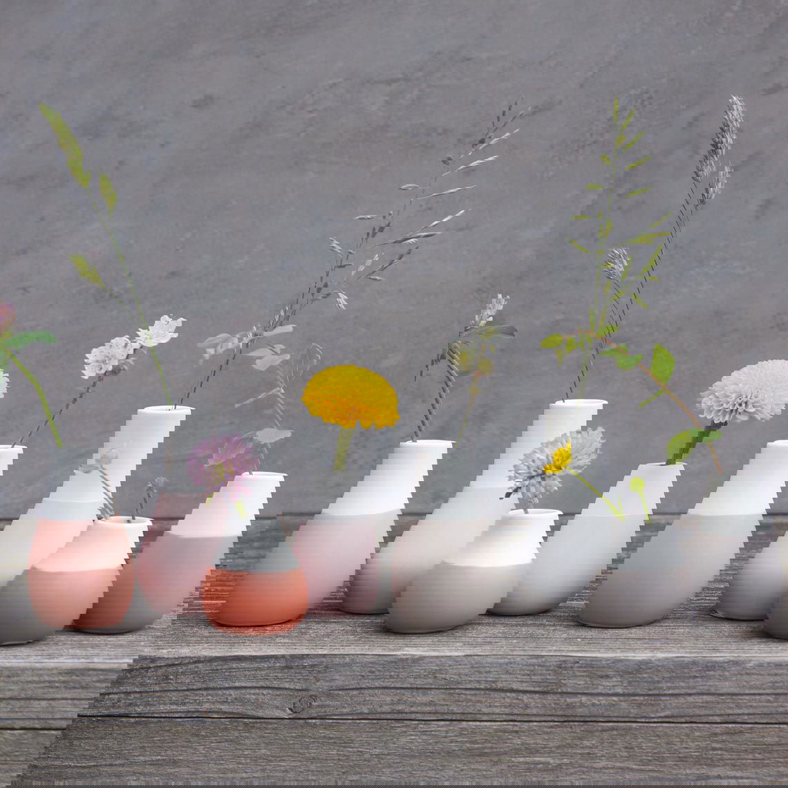 Σετ από 4 μίνι βάζα πορσελάνης για λουλουδάκια που είναι μικρά για να μπουν στο κλασικό βάζο. Χαριτωμένα και διαχρονικά, με ή χωρίς λουλούδια θα διακοσμήσουν διακριτικά το σημείο που θα τοποθετηθούν. Έρχονται σε κουτί-συσκευασία δώρου κατευθείαν για τους αγαπημένους σας!