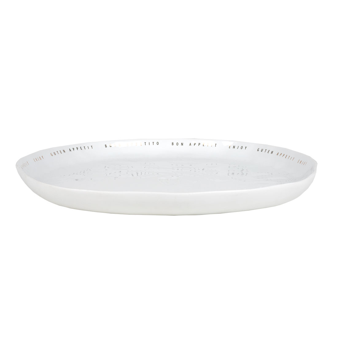 Πορσελάνινη πιατέλα με χρυσή εκτύπωση περιμετρικά μία ξεχωριστή ιδέα για το σερβίτσιο σου αφού μπορείς να προσθέσεις και τα υπόλοιπα κομμάτια της ίδιας σειράς δημιουργώντας ένα ξεχωριστό σερβίτσιο.