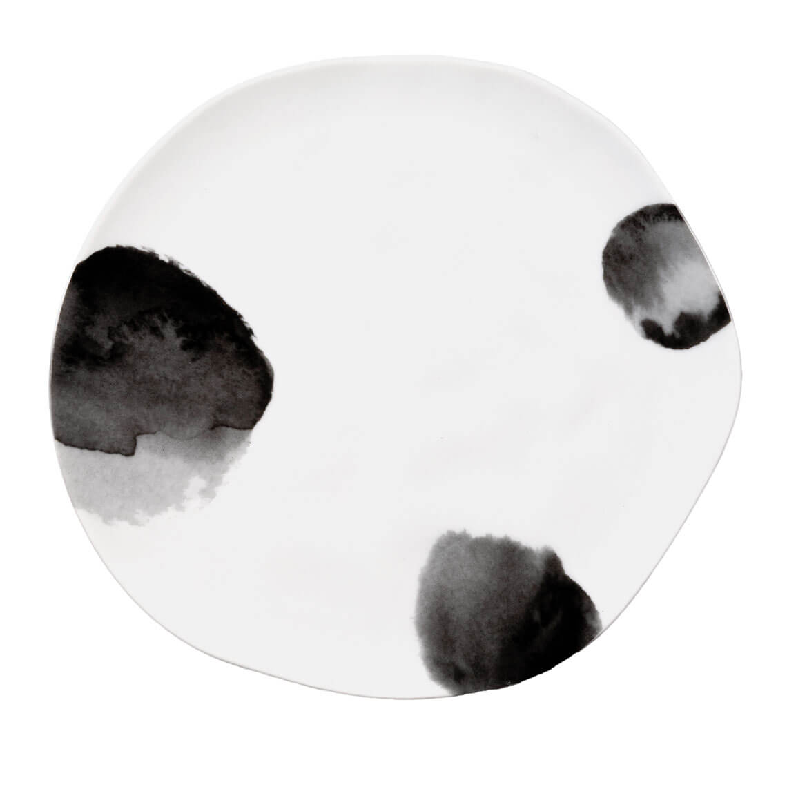 Πορσελάνινο πιάτο με μαύρο σχέδιο σαν ακουαρέλα, για φρούτα και κεράσματα που θα ομορφύνει το τραπέζι σας.