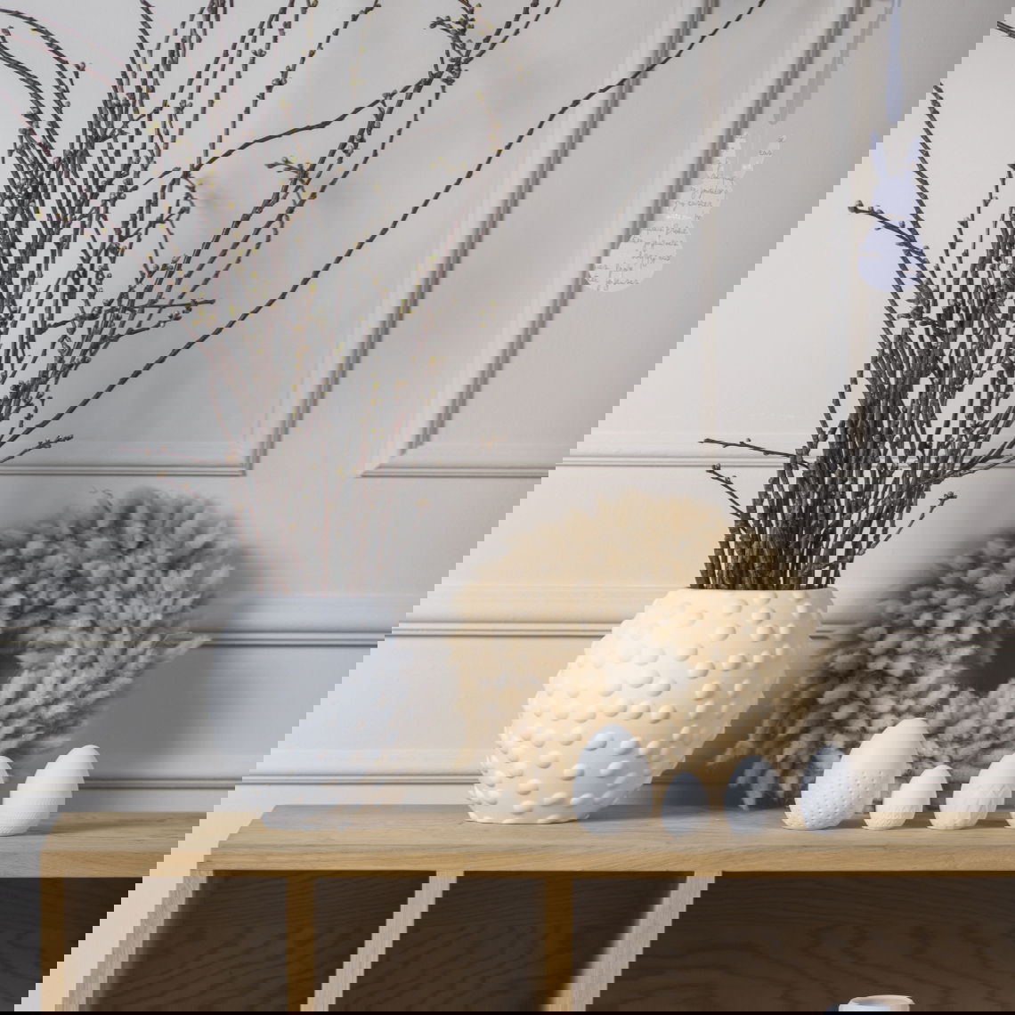 Ένα όμορφο δώρο για την ανοιξιάτικη διακόσμηση του σπιτιού. Το σετ με τα τέσσερα πορσελάνινα αυγά θα διακοσμήσουν κομψά και διακριτικά τον χώρο σας. Συνδυάστε τα με τα υπόλοιπα διακοσμητικά της σειράς για να φτιάξετε μία όμορφη Πασχαλινή γωνιά.
