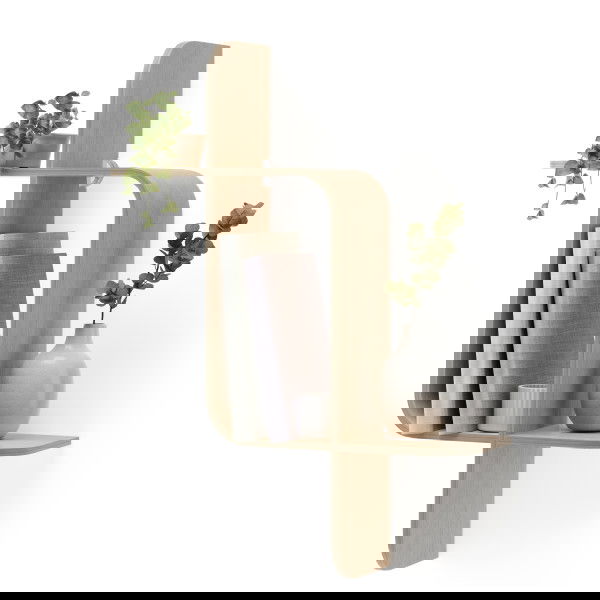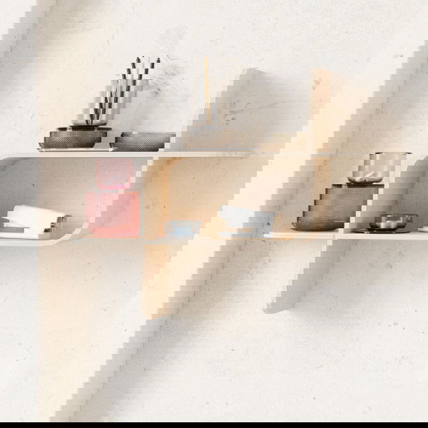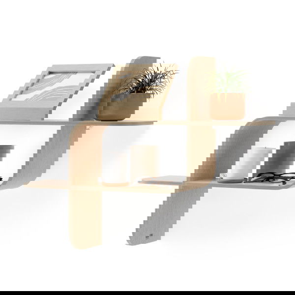 Ραφάκι μοντέρνου στυλ σε φυσικό χρώμα, με γεωμετρικό σχεδιασμό που προσφέρει 4 θέσεις, θα στολίσει όμορφα κάθε τοίχο. Επιλέξτε προσανατολισμό καθετο ή οριζόντιο και τα διακοσμητικά, τα βιβλία ή τα γλαστράκια που θα προσθέσετε και διακοσμήστε το χώρο με το δικό σας ύφος. Ακόμα, δημιουργήστε ένα μοναδικό μοτίβο προσθέτοντας επιπλέον τεμάχια