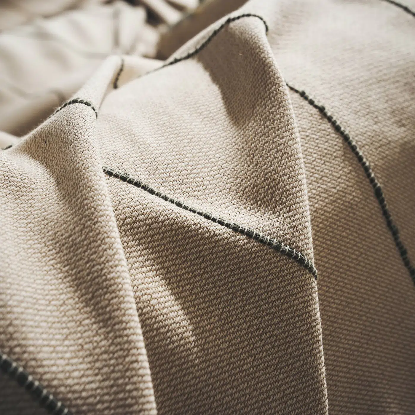 Οικολογικό βαμβακερό ριχτάρι κατασκευασμένο από ανακυκλωμένα νήματα σε χειροκίνητο αργαλειό με ανάγλυφο ριγέ σχέδιο. Με ύφασμα ιδανικού βάρους 270gsm που το βοηθάει να μένει επάνω στον καναπέ και να μην τσαλακώνει εύκολα.