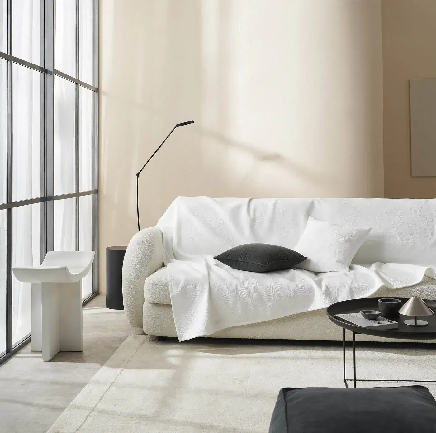 Ριχτάρι με ιδιαίτερα σταθερό ύφασμα και ανάγλυφη ύφανση. Κατασκευασμένο με επιπλέον Chenille νήμα που κάνει το ύφασμα μαλακό και αφράτο, minimal σχεδιασμός με πλούσια υφή.