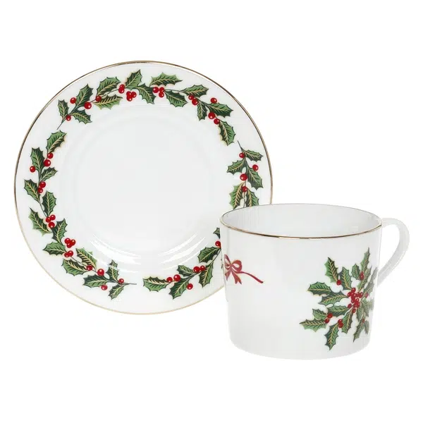 Δύο φλιτζάνια με τα πιατάκια τους από φίνα πορσελάνη με σχέδιο Noel.