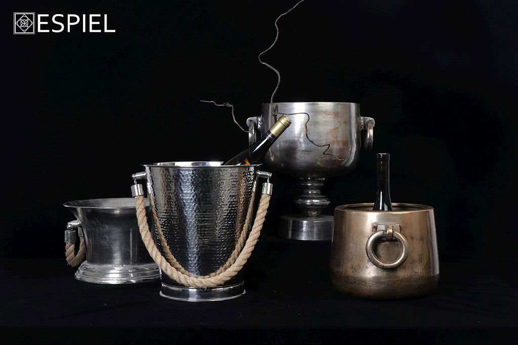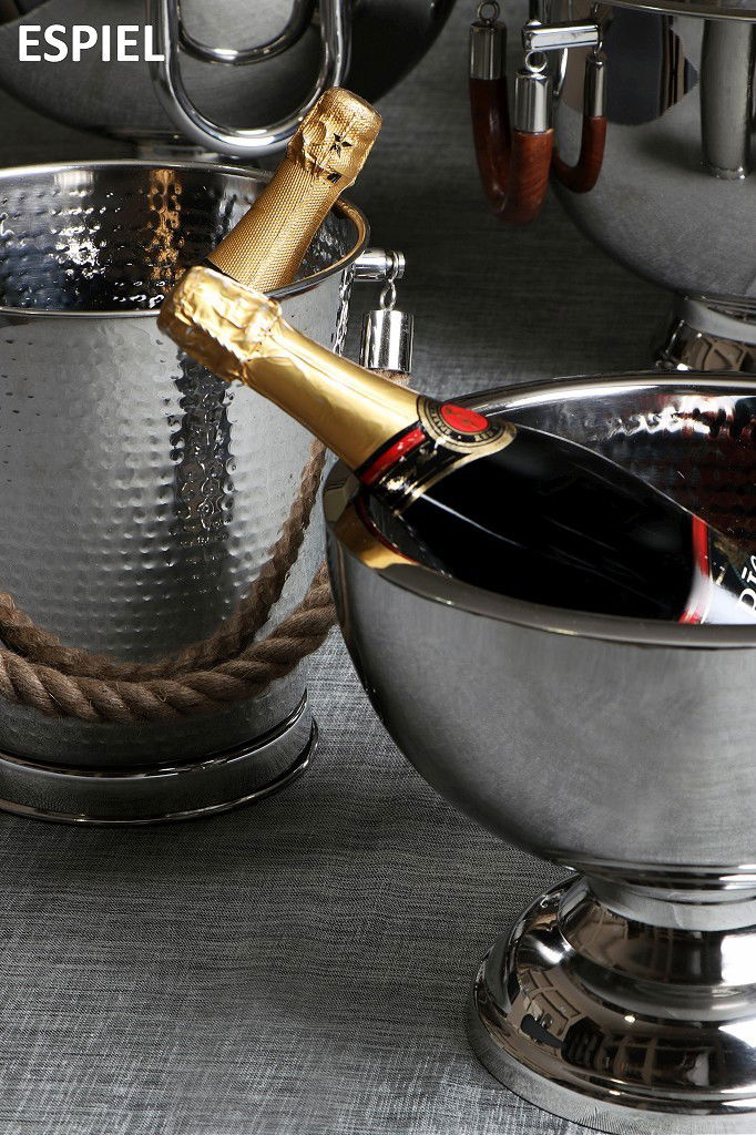 Η γυαλάδα που προσφέρει το χρώμιο στο ανοξείδωτο ατσάλι καθιστά μοναδικά τα προιόντα αυτής της συλλογής. Σαμπανιέρες, δίσκοι και μπωλ σερβιρίσματος ενίοτε συνδυασμένα με γυαλί και ξύλο θα προσφέρουν μια νότα πολυτέλειας και υψηλής ποιότητας στο τραπέζι σας ! – The glossy effect of the chromed stainless steel makes this collection look unique. Wine stands, trays and serving bowls combined with glass, wood or plain, will add a note of luxury and high quality at your dining table !
