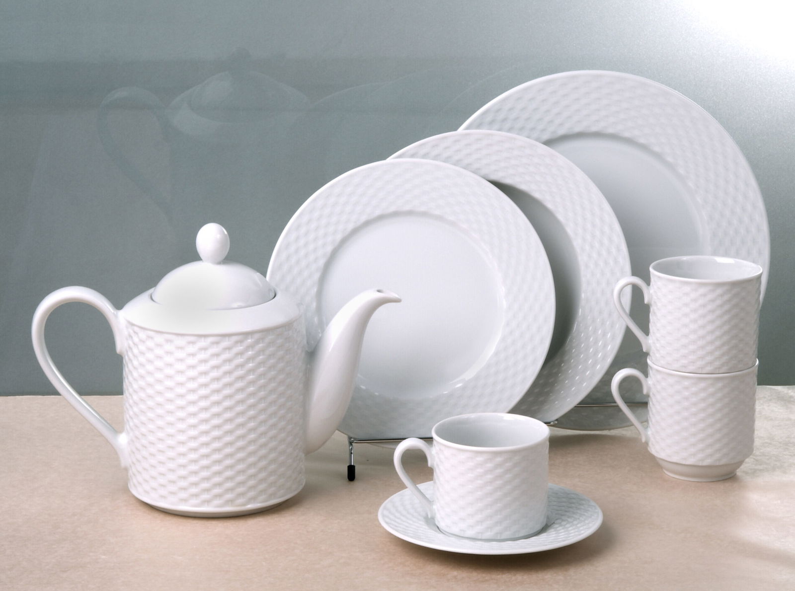 Κλασσικό , διαχρονικό , λευκό από υψηλής ποιότητας πορσελάνη, για να στολίσει τα καθημερινά αλλά και τα επίσημα τραπέζια σας. Το σερβίτσιο περιλαμβάνει: 24 ρηχά, 12 βαθιά, 12 φρούτου, 12 γλυκού, 1 σουπιέρα, 1 σαλτσιέρα, 4 ραβιέρες, 2 σαλατιέρες και 4 πιατέλες. Μπαίνουν κάθε μέρα στο πλυντήριο πιάτων και στον φούρνο μικροκυμάτων.