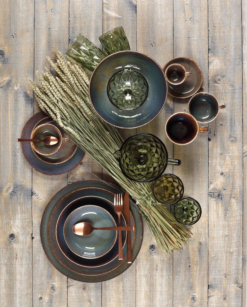 Το σερβίτσιο Emerald είναι ένα μοντέρνο σετ εξαιρετικής ποιότητας πορσελάνης, βαμμένο χειροποίητα πριν τη υάλωση του, 20 τεμαχίων με την εγγύηση της Cryspo Trio. Κατάλληλα για πλυντήριο πιάτων αλλά και για φούρνο μικροκυμάτων. Το σετ περιέχει 6 πιάτα ρηχά, 6 πιάτα βαθιά ,6 πιάτα φρούτου,1 πιατέλα στρογγυλή και 1 σαλατιέρα.