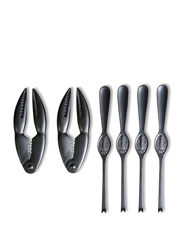 Κομψό σετ για οστρακοειδή αποτελούμενο από δυο θραύστες και τέσσερα πιρούνια. Έρχεται σε πολυτελή θήκη δώρου.