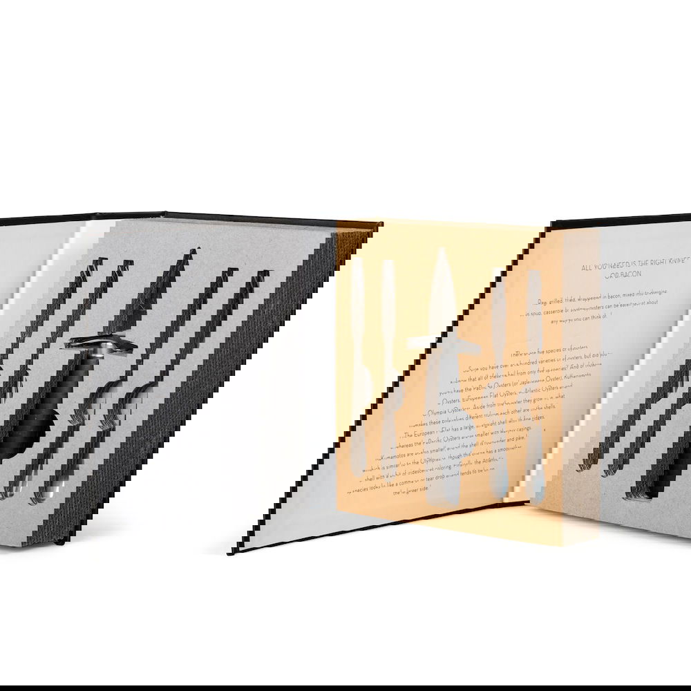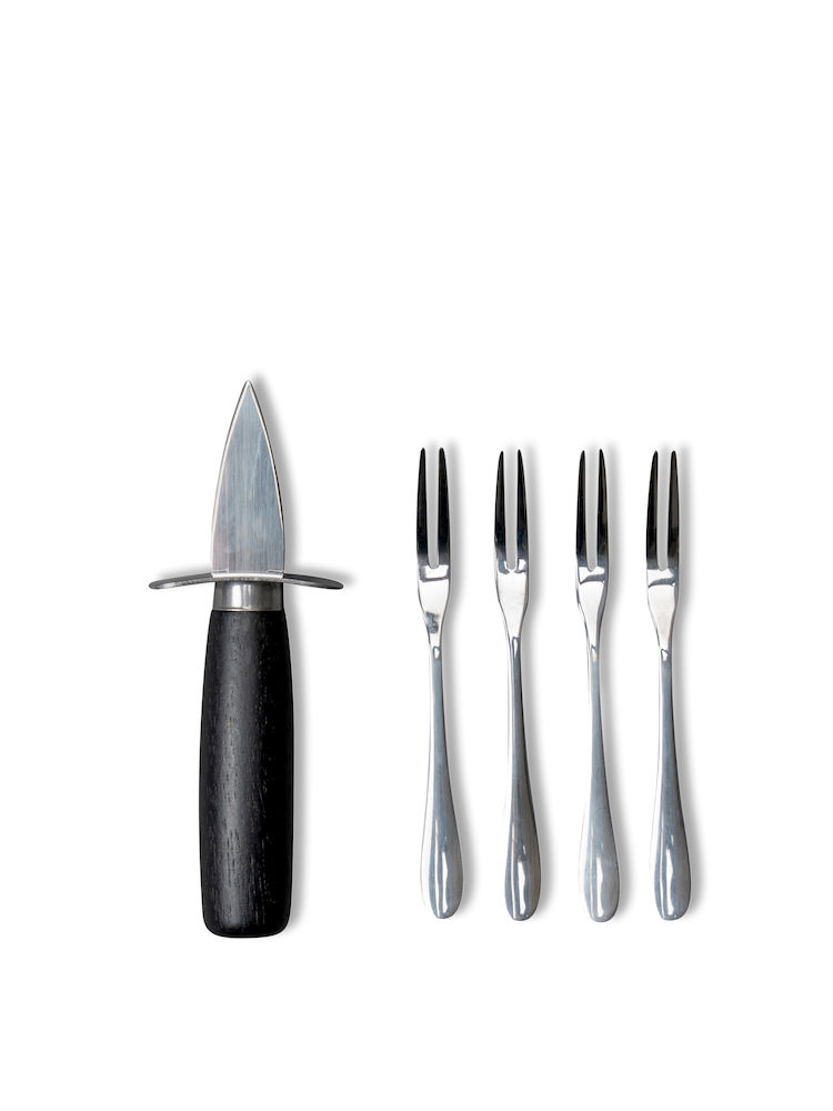 Κομψό σετ για στρείδια αποτελούμενο από τέσσερα πιρούνια κι ένα μαχαιράκι ανοίγματος. Από ανοξείδωτο ατσάλι και ξύλο ακακίας, διατίθεται σε πολυτελές κουτί δώρου.