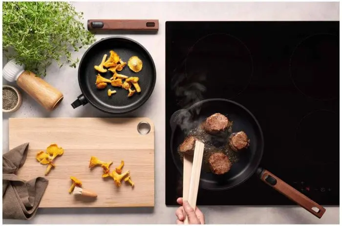 Η Woll φημίζεται για τις αποσπώμενες λαβές των σκευών της, που προσφέρουν πολλά πλεονεκτήματα στον χρήστη. Χωρίς τη λαβή, το σκεύος χωράει αβίαστα στον φούρνο, στον νεροχύτη και στο πλυντήριο πιάτων, και είναι εύκολο να τοποθετηθεί και να στοιβαχτεί σχεδόν σε κάθε ντουλάπι.