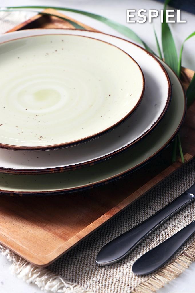 Η συλλογή ”TERRA GREEN” με το ιδιαίτερο μοτίβο και τις λεπτομέρειες στις άκρες θα αναδείξει με τέλειο τρόπο το φαγητό σας. Συνδυάστε τα είδη μεταξύ τους και δώστε γήινο ύφος στον τραπέζι σας ! – The ”TERRA GREEN” series with their special pattern and rim details will highlight your food. Combine the items together for a natural style at your dining table !