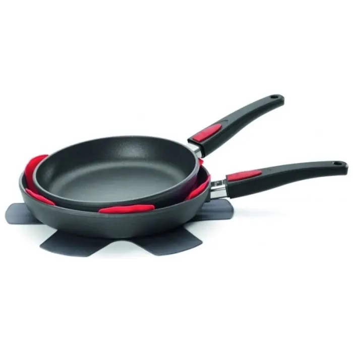 Οι αποσπώμενες λαβές σας διευκολύνουν και είναι πρακτικές και ασφαλείς, μπορείτε τις αφαιρέσετε και να βάλετε το σκεύος στο φούρνο. Αφαιρούνται εύκολα και βοηθούν την εξοικονόμηση χώρου τόσο στην αποθήκευση όσο και στο πλυντήριο. Οι αποσπώμενες λαβές δεν είναι θερμοανθεκτικές και πρέπει να αφαιρεθούν πριν από τη χρήση του σκεύους στο φούρνο.