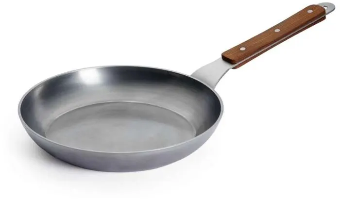 Στα τηγάνια από carbon steel γίνεται seasoning με φυσικά έλαια, τελειοποιούνται με μια ξύλινη σταθερή λαβή βιώσιμης παραγωγής και είναι απαλλαγμένα από PFAS.