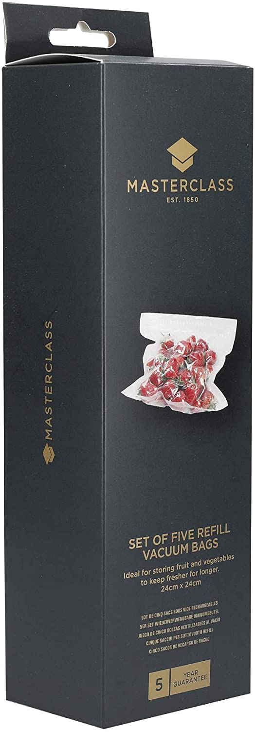 Εξοικονομήστε χώρο, εξοικονομήστε χρήματα και βοηθήστε στη σωτηρία του πλανήτη με αυτές τις επαναχρησιμοποιούμενες σακούλες τροφίμων από πολυαιθυλένιο, που έχουν σχεδιαστεί για χρήση με την αντλία στεγανοποίησης τροφίμων MasterClass. Περιλαμβάνονται πέντε σακούλες, ώστε να μεγιστοποιήσετε πραγματικά τον χώρο αποθήκευσης των τροφίμων σας.