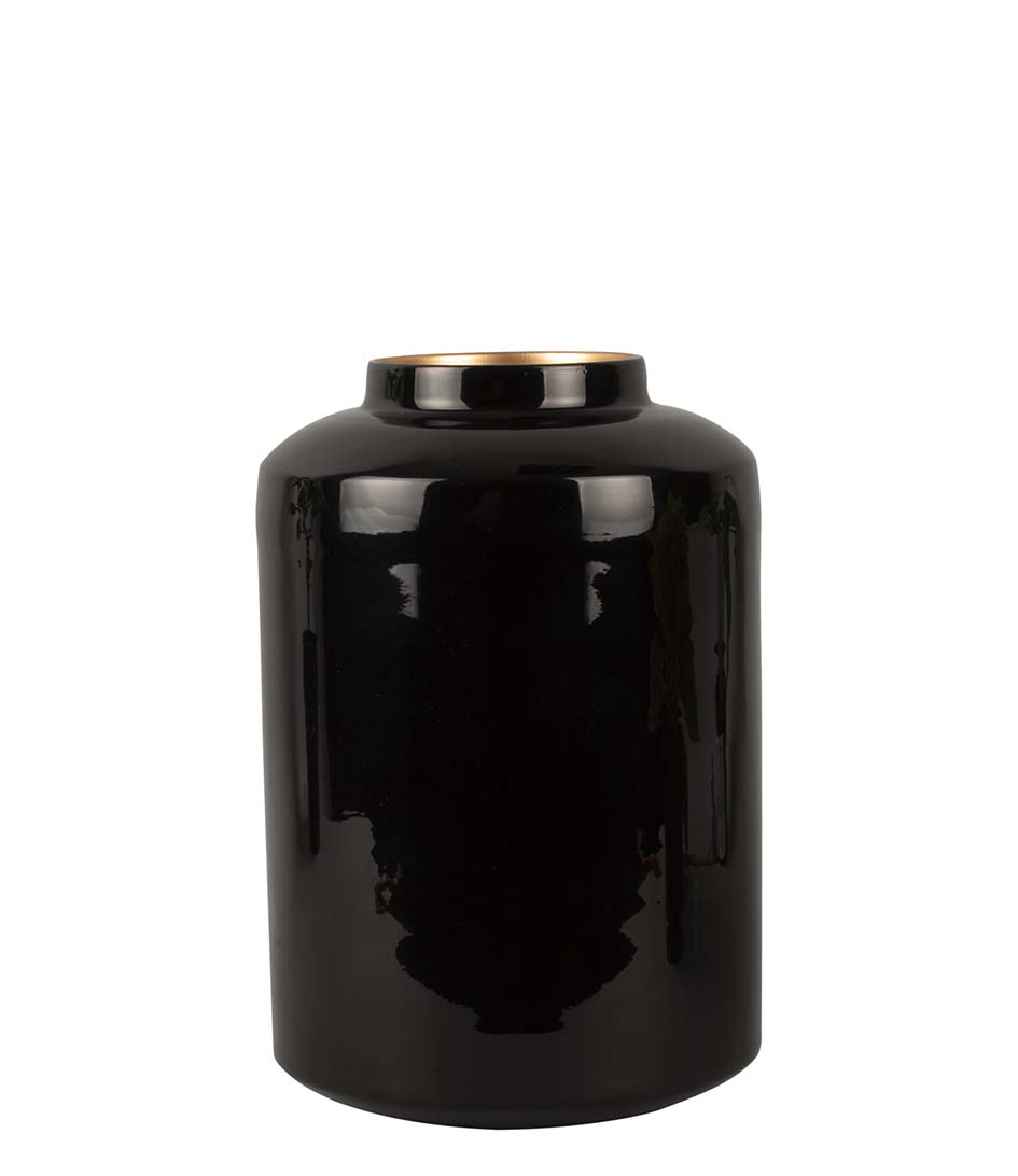 Αυτό το βάζο από την Present time ξεχωρίζει με το μαύρο χρώμα του και το πληθωρικό σχήμα του. Προσθέστε μερικά λουλούδια ή ανθισμένα κλαδιά στο βάζο και θα γίνει ένα ωραίο κεντρικό κομμάτι στο τραπέζι. Ακόμη και χωρίς λουλούδια ή κλαδιά, χρησιμεύει ως μια όμορφη διακόσμηση στο δωμάτιο. Μπορείτε να το τοποθετήσετε μόνο του ή να το ανακατέψετε και να ταιριάξετε με άλλα διακοσμητικά αντικείμενα.