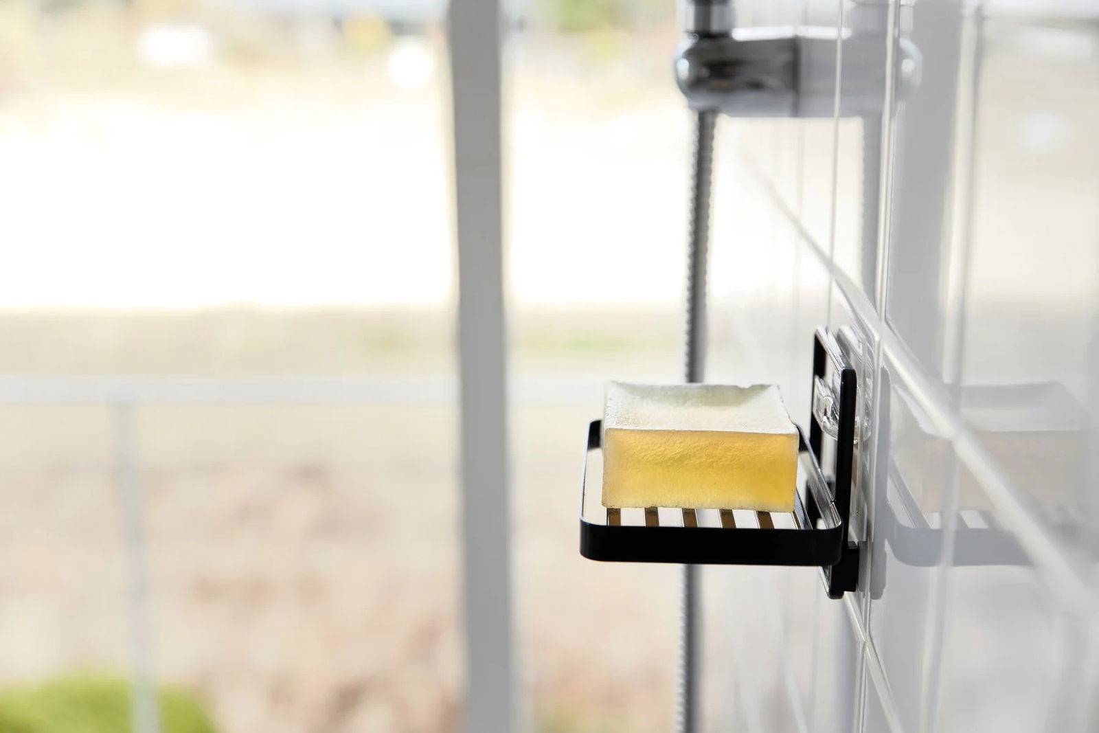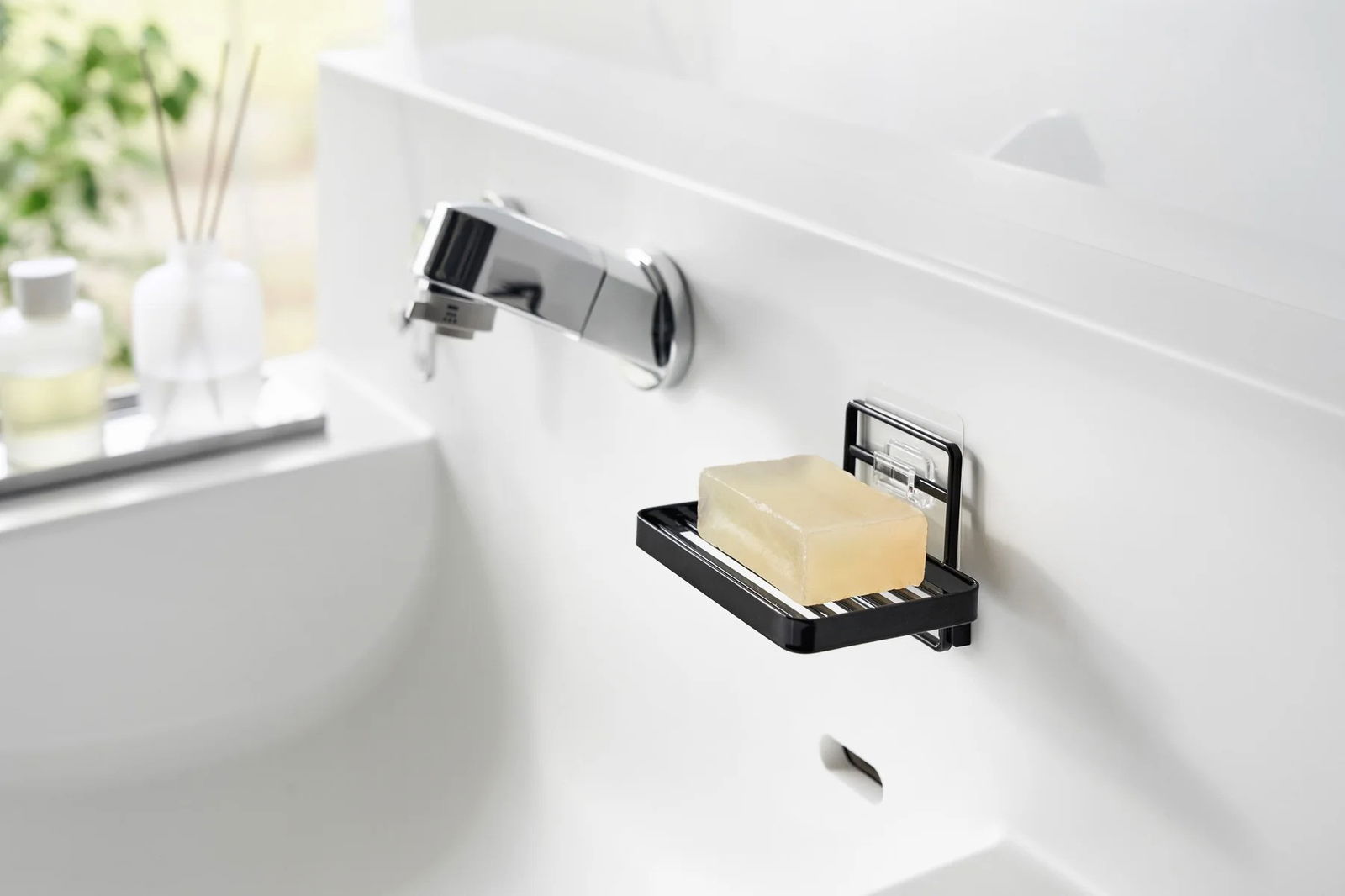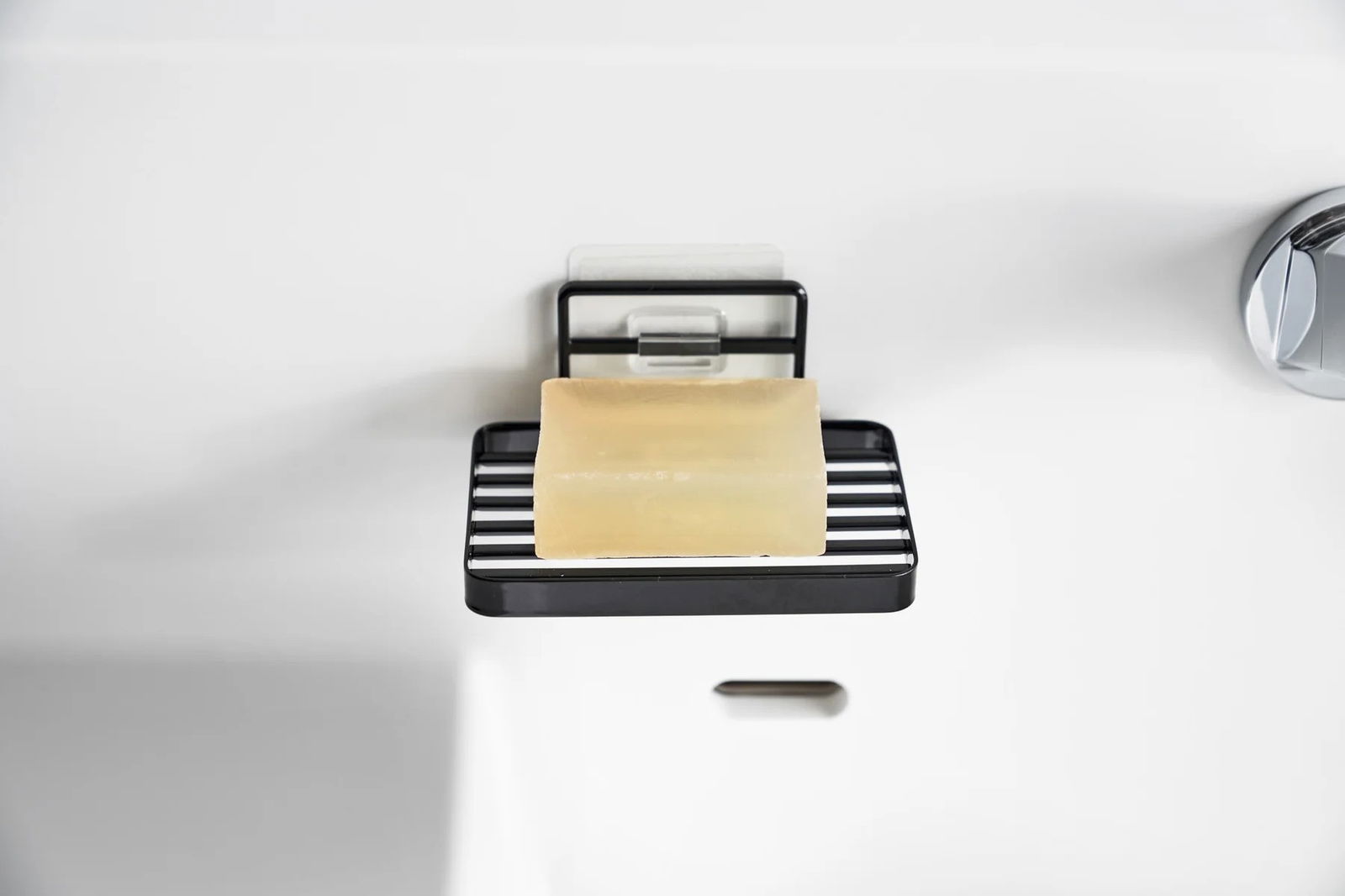 Βάση για σαπιούνι που τοποθετείται εύκολα στον τοίχο με την διάφανη μεμβράνης που περιλαμβάνεται. Είναι σχεδιασμένη ΄με μορφή σχάρας ώστε τα σαπούνια να στεγνώνουν πιο γρήγορα, εξασφαλίζοντας καθαρή και υγιεινή χρήση και διατηρώντας τον νιπτήρα καθαρό και τακτοποιημένο.