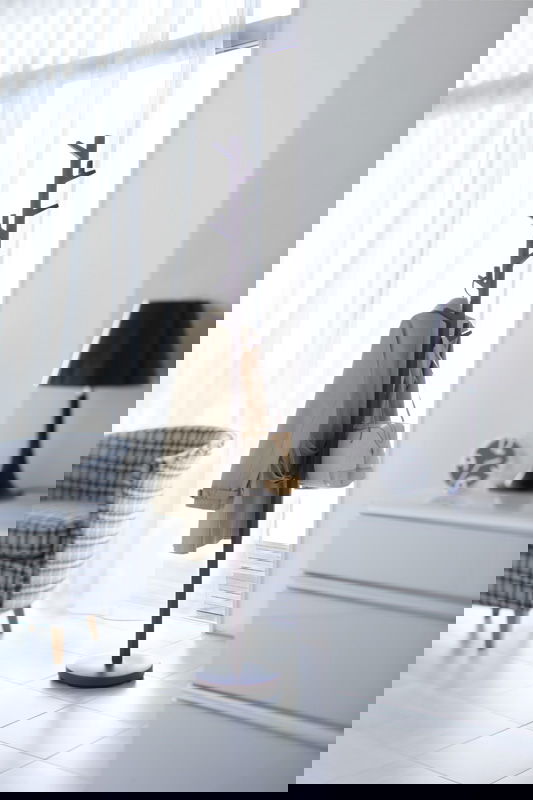 Ο καλόγερος που μοιάζει με δέντρο μπορεί να χωρέσει μια ποικιλία ρούχων και αξεσουάρ. Τα κλαδιά του μπορούν να περιστραφούν και να χρησιμοποιηθούν όπως θέλετε. Ο minimal σχεδιασμός του είναι μια κομψή προσθήκη σε κάθε δωμάτιο.